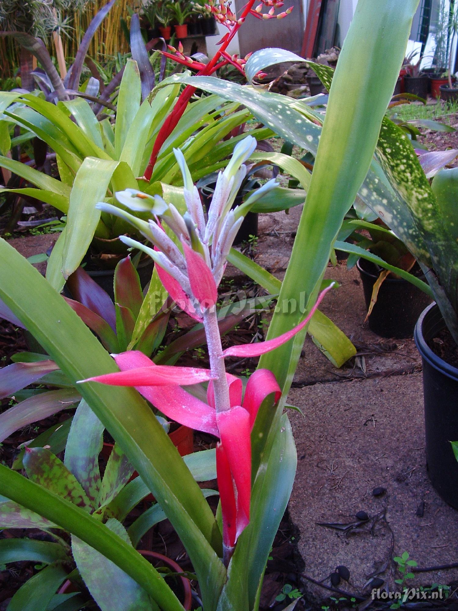 (Geladen als: Billbergia Identification) Fotograaf: Richard Martin Opmerking: Hello, this is one of a few remaining Bromeliads in my collection yet to be identified. It has an extreme tubular form growing up to 80cms in height. In groups it tends to prostrate after flowering and uses running rhizomes to spread, the flowers are of very soft shades and short lasting. Any help in ID would be appreciated. I don't think it will pose to much of a problem to the group experts! Thank you in advance. Determinatie: Opgelost