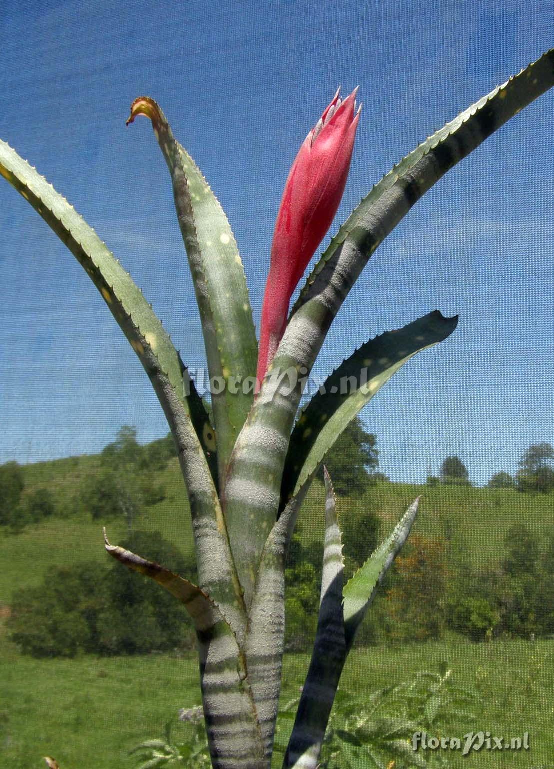 - Opmerking (9682): Richard Martin (2012-01-30) - Looks like a Billbergia macrocalyx hybrid with its upright flower and white spotted leaves?My B.macrocalyx have paler blue flowers. (Verzonden: brom-l@science.uu.nl)