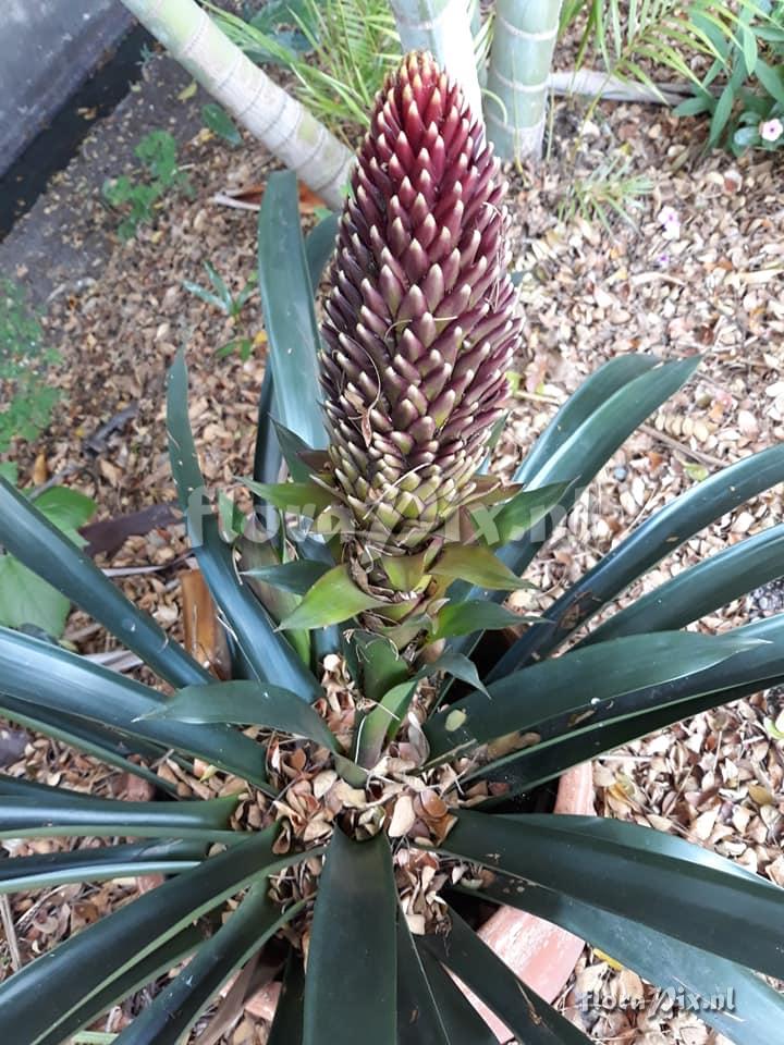 - I do not know how an old inflorescence of Guzmania conifera colores, but at anthesis its bracts are bright orange with yellow tip (Verzonden: brom-l@science.uu.nl) - Determinatie: (2018-12-03) =Guzmania x conifera hybrid