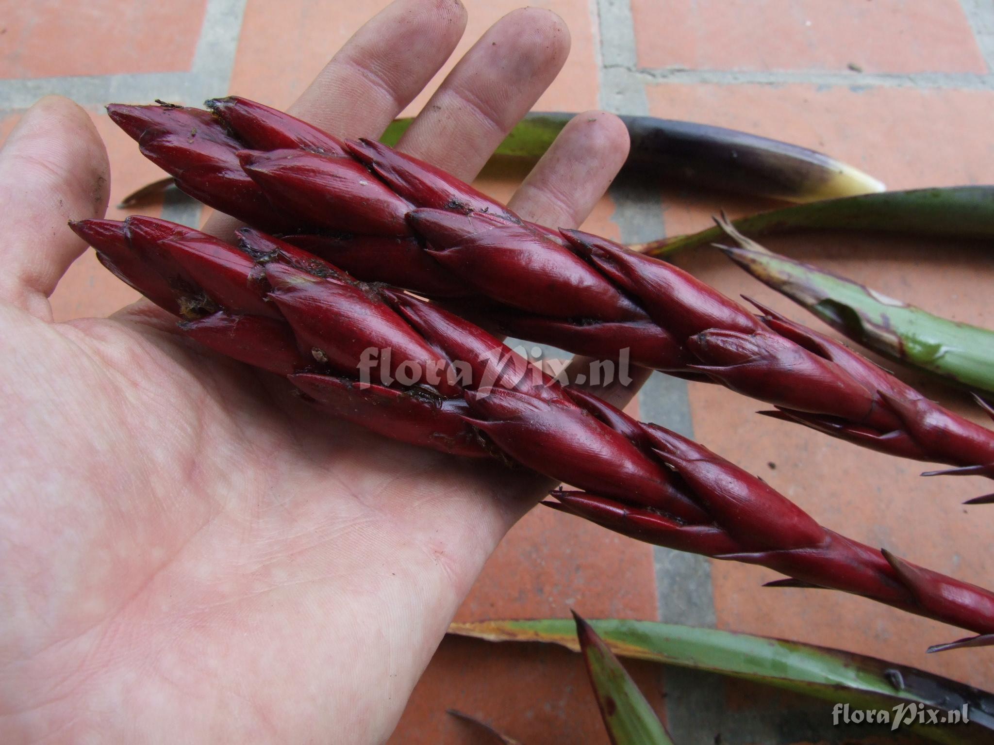 Verzamel locatie: Ecuador - Province of Loja, Parque Nacional Podocarpus, Cajanuma Fotograaf: Florian Werner Opmerking: Col.: Werner, F.A. 2024 (08-06-2006) "small spiky tank rosette; entire infl. bright red (no flowers present)."
