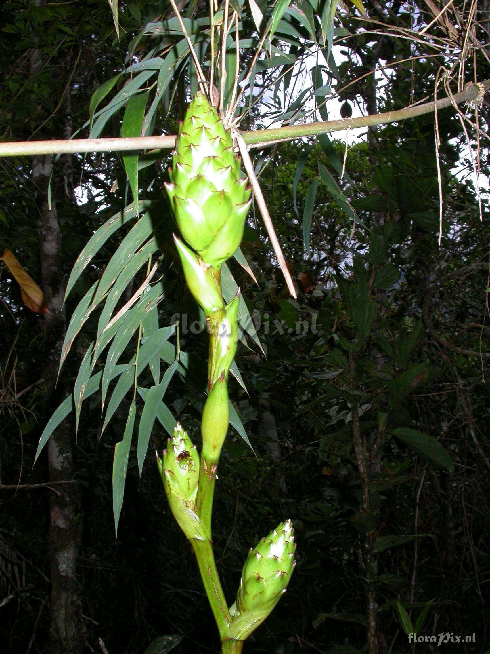 Verzamel locatie: Ecuador - Prov. of Zamora-Chinchipe, area of Estación Cientifica San Francisco (S 03°58“, W 79°04“ ), road Loja-Zamora, ca. 35 km from Loja; moist montane forest Fotograaf: Florian Werner Opmerking: Col.: Werner, F.A. 2116 (24-10-2006) - Det.: W. Till (U Vienna) 2011 apparently same as fw2069 though rel. small and with very little red on bracts, pedicel and peduncle. White flowers open at night.