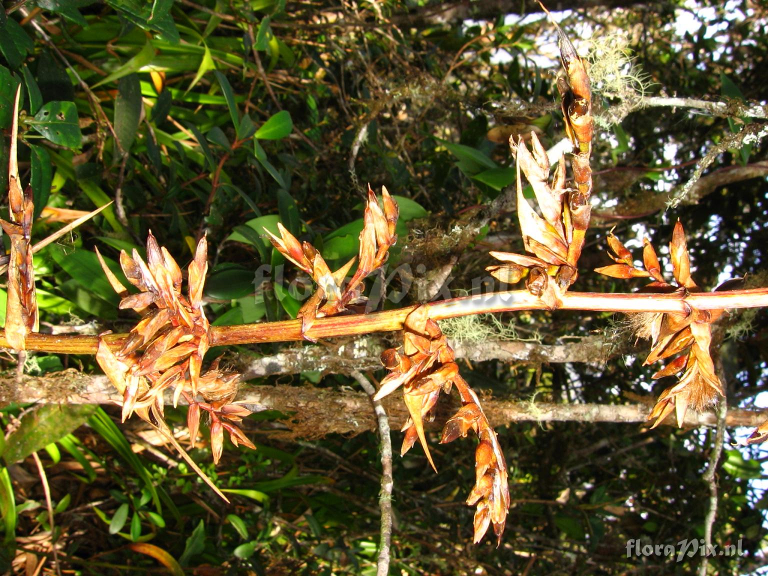 Verzamel locatie: Ecuador - Prov. of Zamora-Chinchipe, area of Estación Cientifica San Francisco (S 03°58“, W 79°04“ ), road Loja-Zamora, ca. 35 km from Loja; moist montane forest Fotograaf: Florian Werner Opmerking: Col.: Werner, F.A. 402 (06-03-2000) "inflorescence erect, open, red and yellow; dominating herb layer around 2400m"