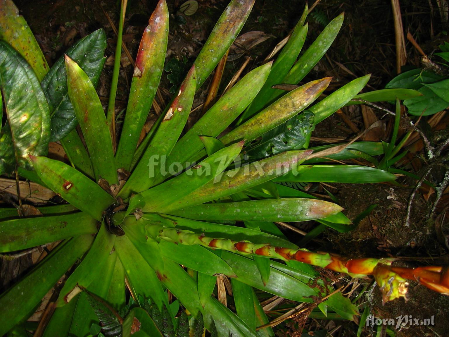 Verzamel locatie: Ecuador - Prov. of Zamora-Chinchipe, area of Estación Cientifica San Francisco (S 03°58“, W 79°04“ ), road Loja-Zamora, ca. 35 km from Loja; moist montane forest Fotograaf: Florian Werner Opmerking: Col.: Werner, F.A. 1824 (19-11-2005) - Det.: H. Luther (SEL) 2007 "or epiphytic close ground. leaves thick and stiff; bracts plain olive, petals large and white, opening at dusk."