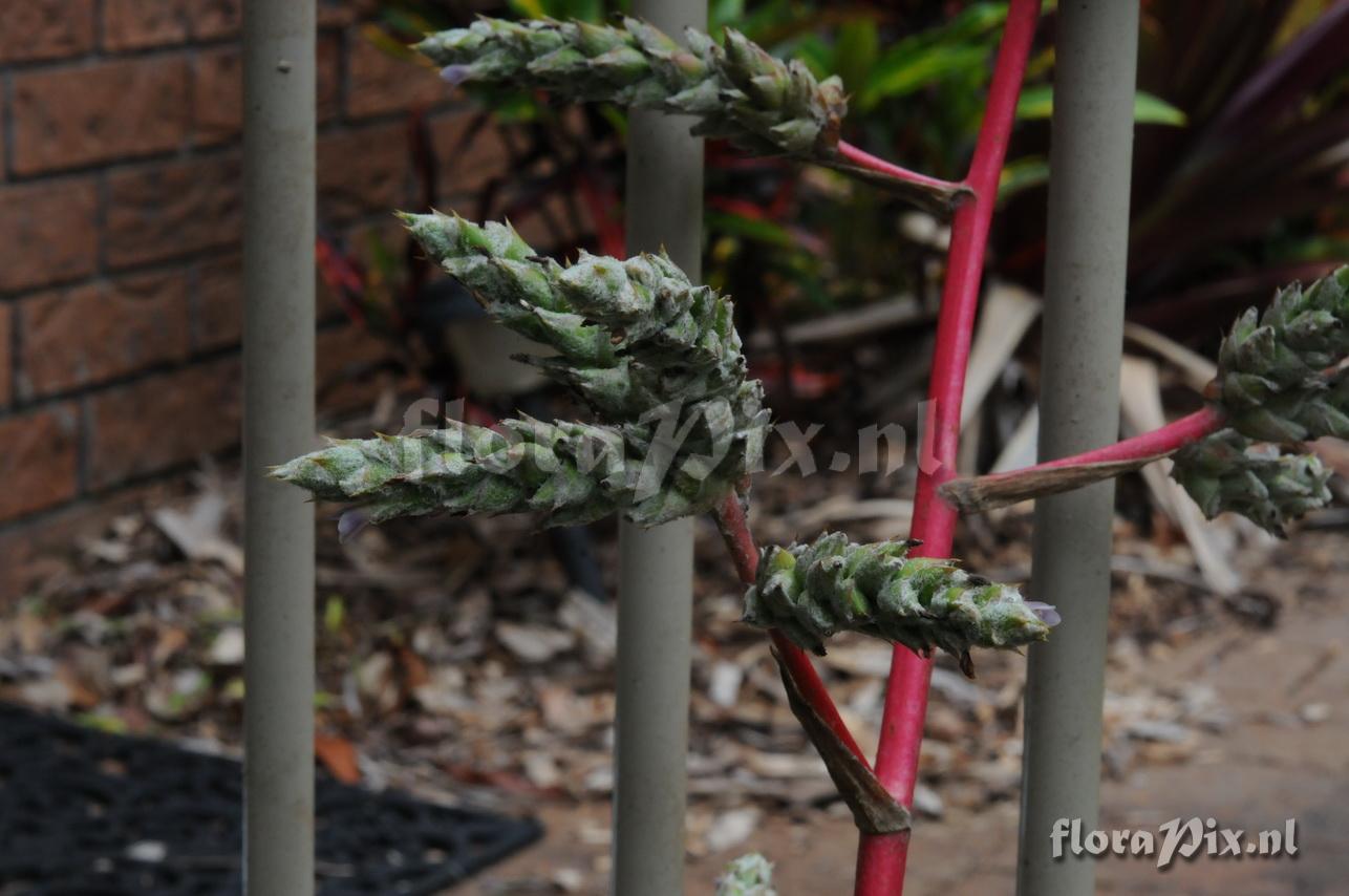 - Also resembles H. aechmeoides but the undulated leaf blade margins favor the former. "Marselby" probably garble for Marie Selby B.G. I had both of these taxa there. (Verzonden: brom-l@science.uu.nl) - Opmerking (9563): Uncle Derek (2011-12-15) - My first thoughts were 'Not another Hohenbergia hybrid" because over the last 10 years we, in Australia, have puzzled over these sorts of plants where we only know they were raised from seed. For example this plant has flavours of H. catingae and H. corriea-araujoi, both of which we know are growing in Australia. Perhaps this should be referred further to the Qld Brom Soc (Verzonden: brom-l@science.uu.nl)