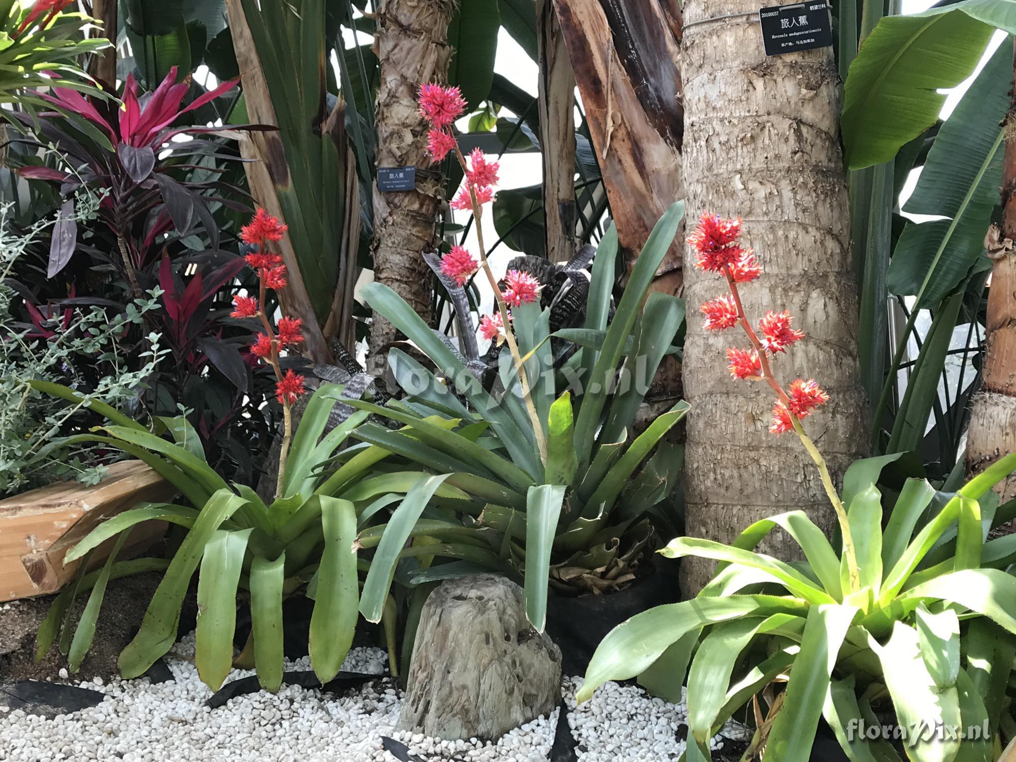 Verzamel locatie: China - Shanghai - Chenshan Botanical Garden Fotograaf: Ping Li Opmerking: These three plants should be Hohenbergia stellata, right? But the center one with different origins looks quite different to the ones beside it, it’s pink in color and the others are red, it’s leaves are also different in color and texture, grey green compare to green, and harder than the other two. Could anyone tell me the story behind it? Many thanks. (Verzonden: brom-l@science.uu.nl) Determinatie: in behandeling