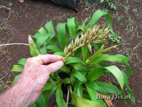 Verzamel locatie: Brazil S. America - Sao Paulo - From Mauro in Sao Paulo State South America. Fotograaf: Allan Ladd Opmerking: This Pitcairnia was sold to me as Pitcairnia garrifi seed? Plant was one of a batch of seedlings which were very consistent in foliage & flower, all with rich soft green foliage with brilliant scarlet to orange red simple inflorescence. (See old inflorescence for structure). This plant likes damp soils & is an evergreen in my climate, no dormant stage as Derek mentioned. I make the assumption that it is a form of P. flammea, any suggestions as to the true ID??? (Verzonden: brom-l@science.uu.nl) Determinatie: gevraagd