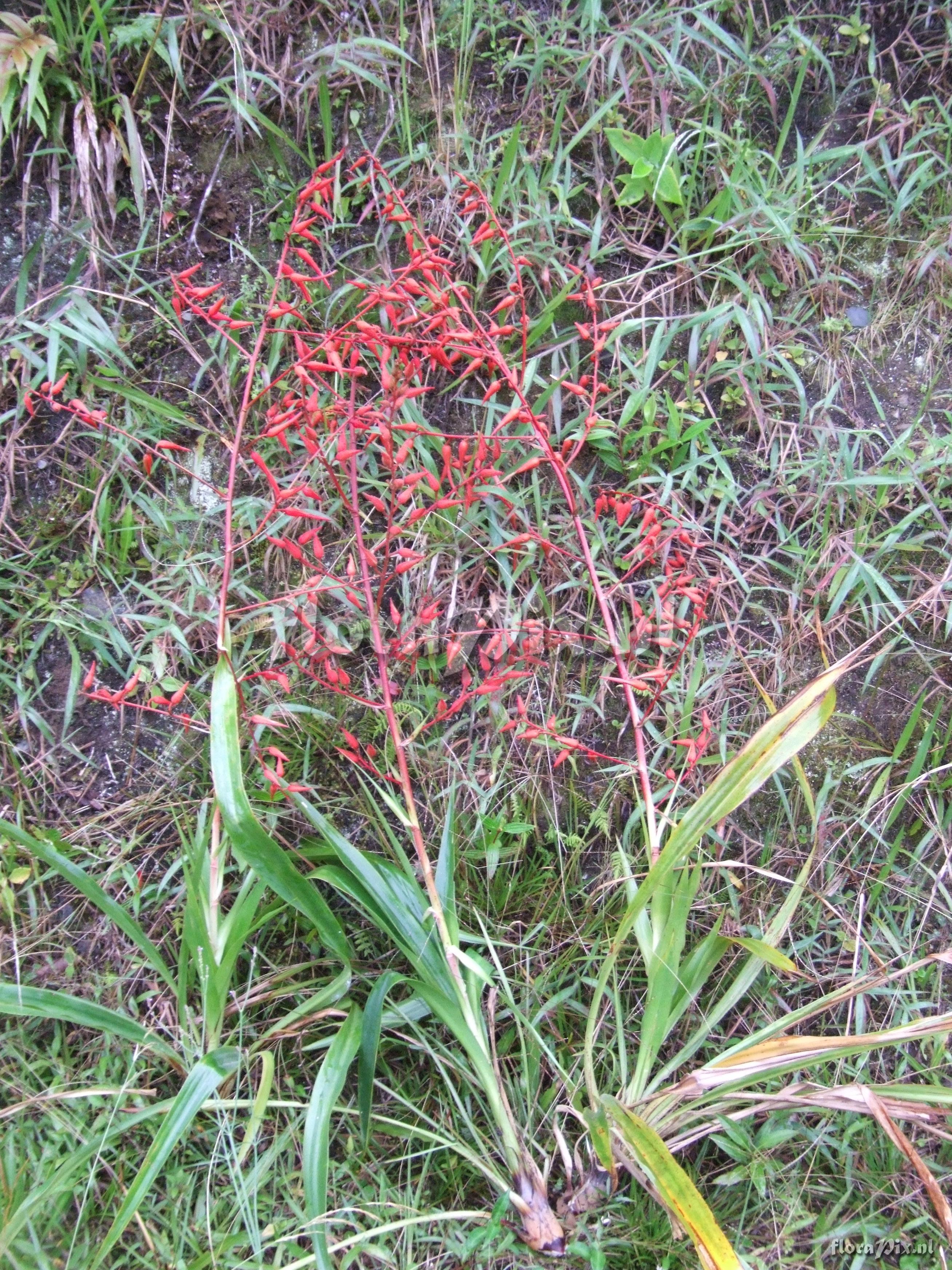 (Geladen als: Pitcairnia ) Verzamel locatie: Ecuador - Prov. of Zamora-Chinchipe, area of Estación Cientifica San Francisco (S 03°58“, W 79°04“ ), road Loja-Zamora, ca. 35 km from Loja; moist montane forest Fotograaf: Florian Werner Opmerking: Col.: Werner, F.A. 1933 (08-08-2006) entire inflorescence bright orange. Determinatie: Opgelost