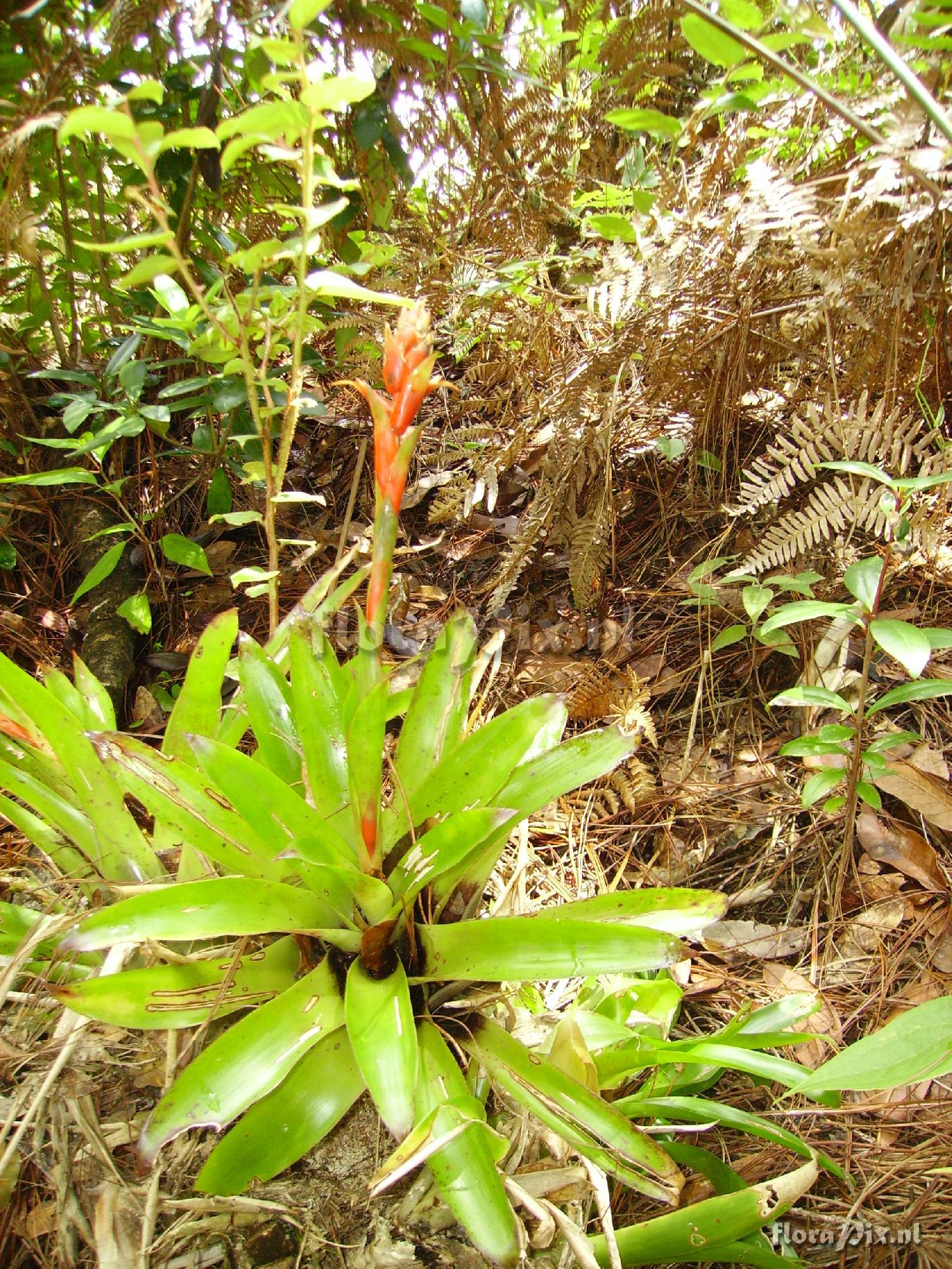 Flower and stem 26 cm. Leaves 16 cm long. On a fallen trunk. (Verzonden: brom-l@science.uu.nl)