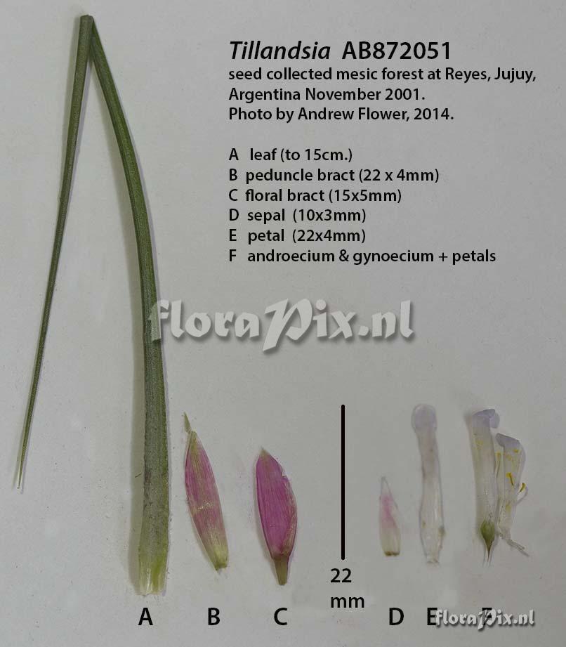 Opmerking: first generation wild-collected seed in 2001. Looks to me like T. tenuifolia var. disticha, although S&D list only Brazil for that taxon. ? (Verzonden: brom-l@science.uu.nl)