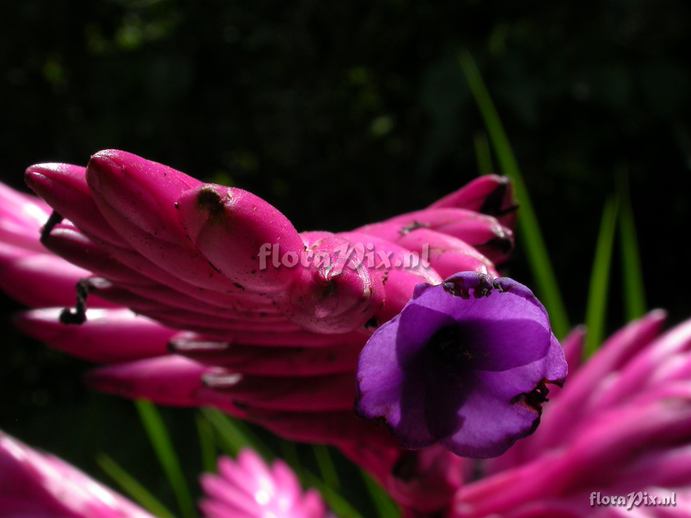 Verzamel locatie: Ecuador - Prov. of Zamora-Chinchipe, area of Estación Cientifica San Francisco (S 03°58´, W 79°04´ ), road Loja-Zamora, ca. 35 km from Loja; moist montane forest Fotograaf: Florian Werner Opmerking: Col.: Werner, F.A. 2404 (29-02-2008) - Det.: F.A. Werner "uncommon at ECSF; apparently not reaching higher than 1900m; entire inflorescence electric pink; petals with large, roundish lobes and lila; 3rd individual flowering in sec. forest, midstory currently (1820m)"