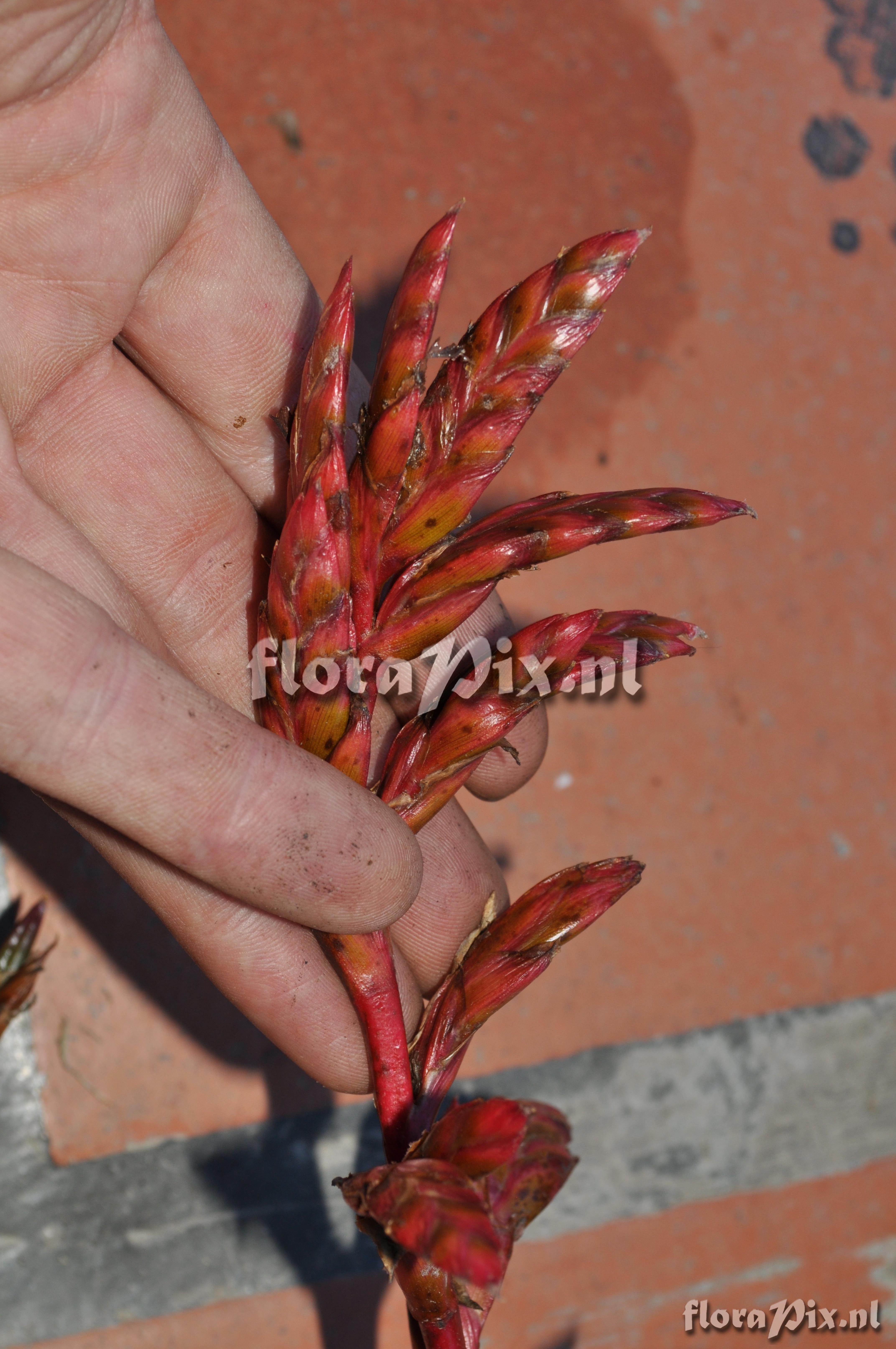 Verzamel locatie: Ecuador - Prov. of Zamora-Chinchipe, area of Estación Cientifica San Francisco (S 03°58´, W 79°04´ ), road Loja-Zamora, ca. 35 km from Loja; moist montane forest Fotograaf: Florian Werner Opmerking: Col.: Werner, F.A. 3125 (09-04-2011) "common; strictly terrestrial; high water storage capacity regarding shortness of (the many) leaves; leaf tips rolled up; infl. erect, red, ca. 1-1.3m tall (petals purple); Young plants routinely developing on old fruits eventually drop off and regularly just keep growing. Hatts off."