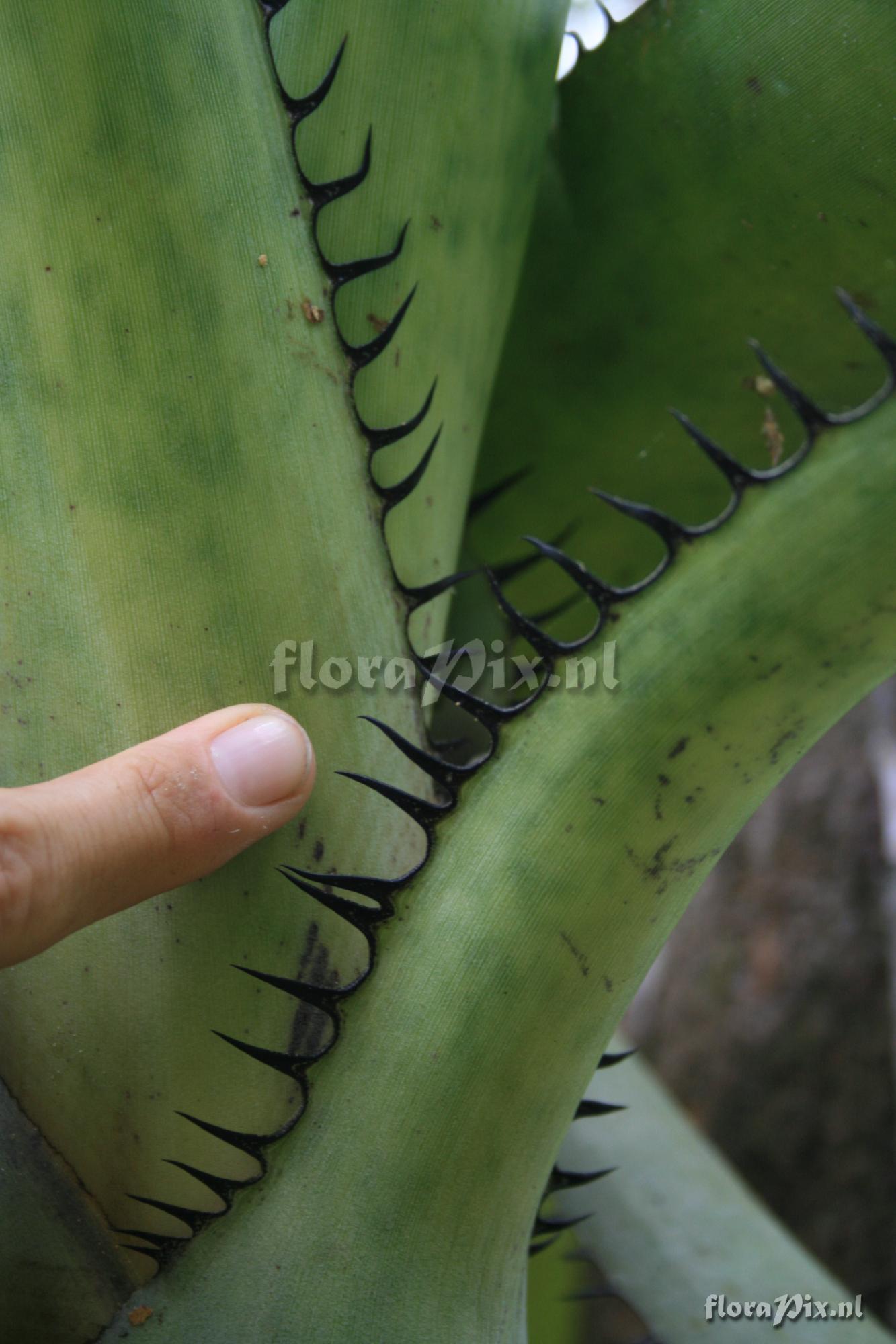 (Dimension: 1363 x 2050 pixels - Counter: 17914) Aechmea setigera Locality: Panama - Spontaneously growing in the area of the Summit Botanical Garden at the Canal Photographer: Note: My finger is about 1.7 cm wide. Identification: pending