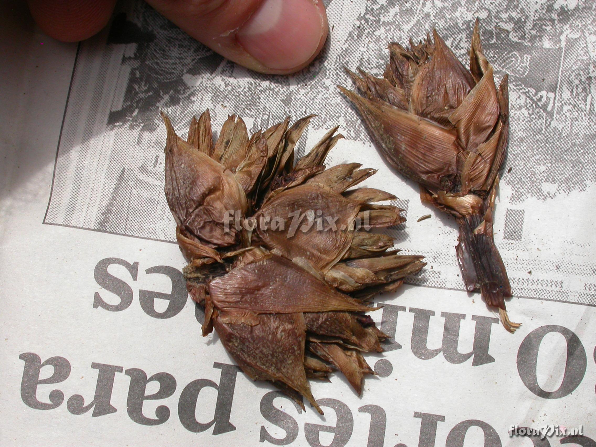 Locality: Ecuador - Prov. of Zamora-Chinchipe, area of Estación Cientifica San Francisco (S 03°58“, W 79°04“ ), road Loja-Zamora, ca. 35 km from Loja; moist montane forest Photographer: Florian Werner Note: Col.: Werner, F.A. 2175 (16-01-2007) "petals blunt, apparently white when mature, but turning grey with age. Only Greigia at these low altitudes; characteristically dense scaling abaxially on leaves."