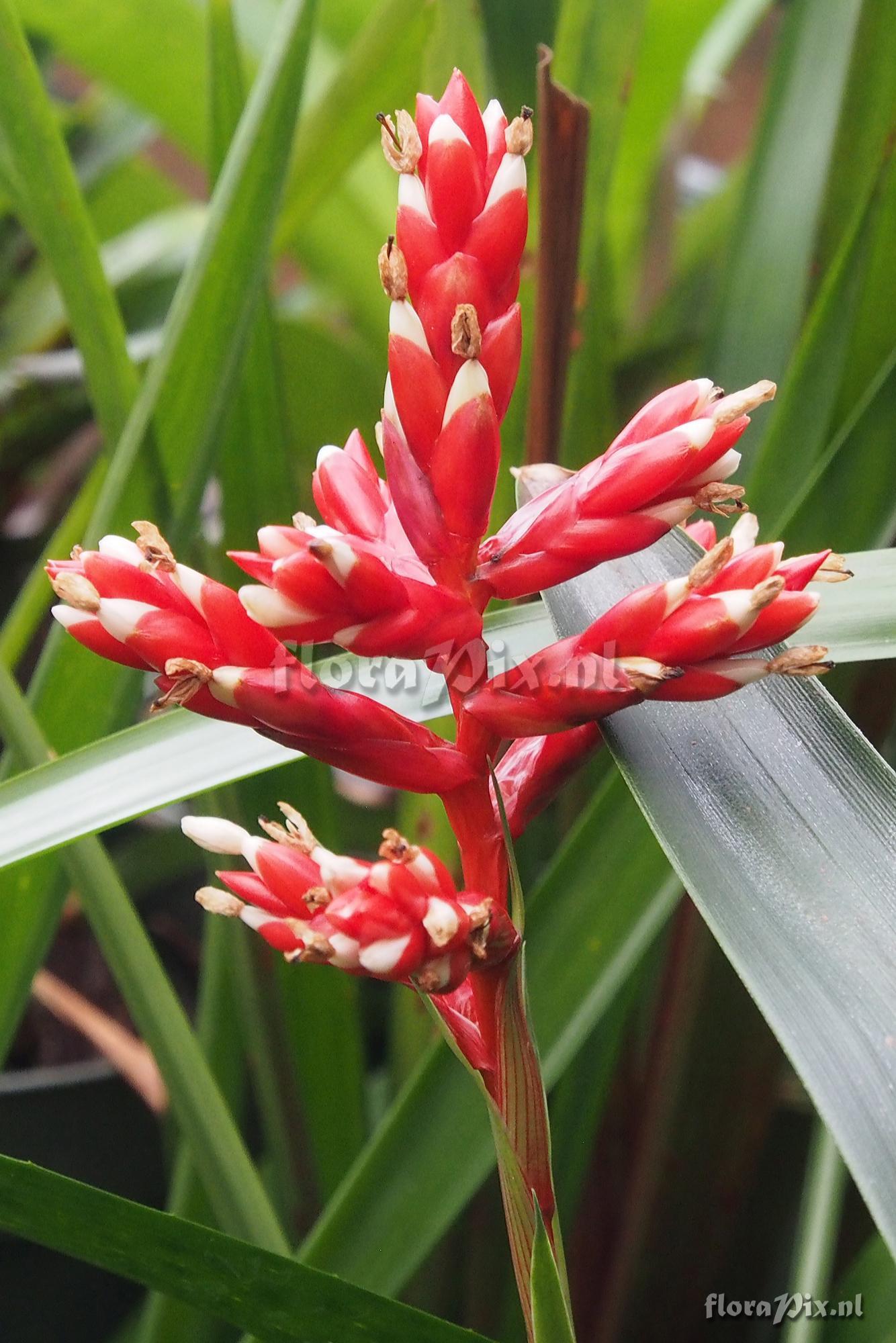 Locality: Ecuador - Unknown - This is inflorescence of Guzmania madasonii identified for me by HEL. Obtained 12 Feb 1995 with Jeffery Kent from father Angel Andreetta near Limon, Ecuador at an elevation of about 1200 meters. It was in bloom at the same time as Guzmania condorensis under the exact same conditions in my greenhouse. In include it for comparison to Guzmania condorensis. Photographer: Jerry Raack Identification: pending