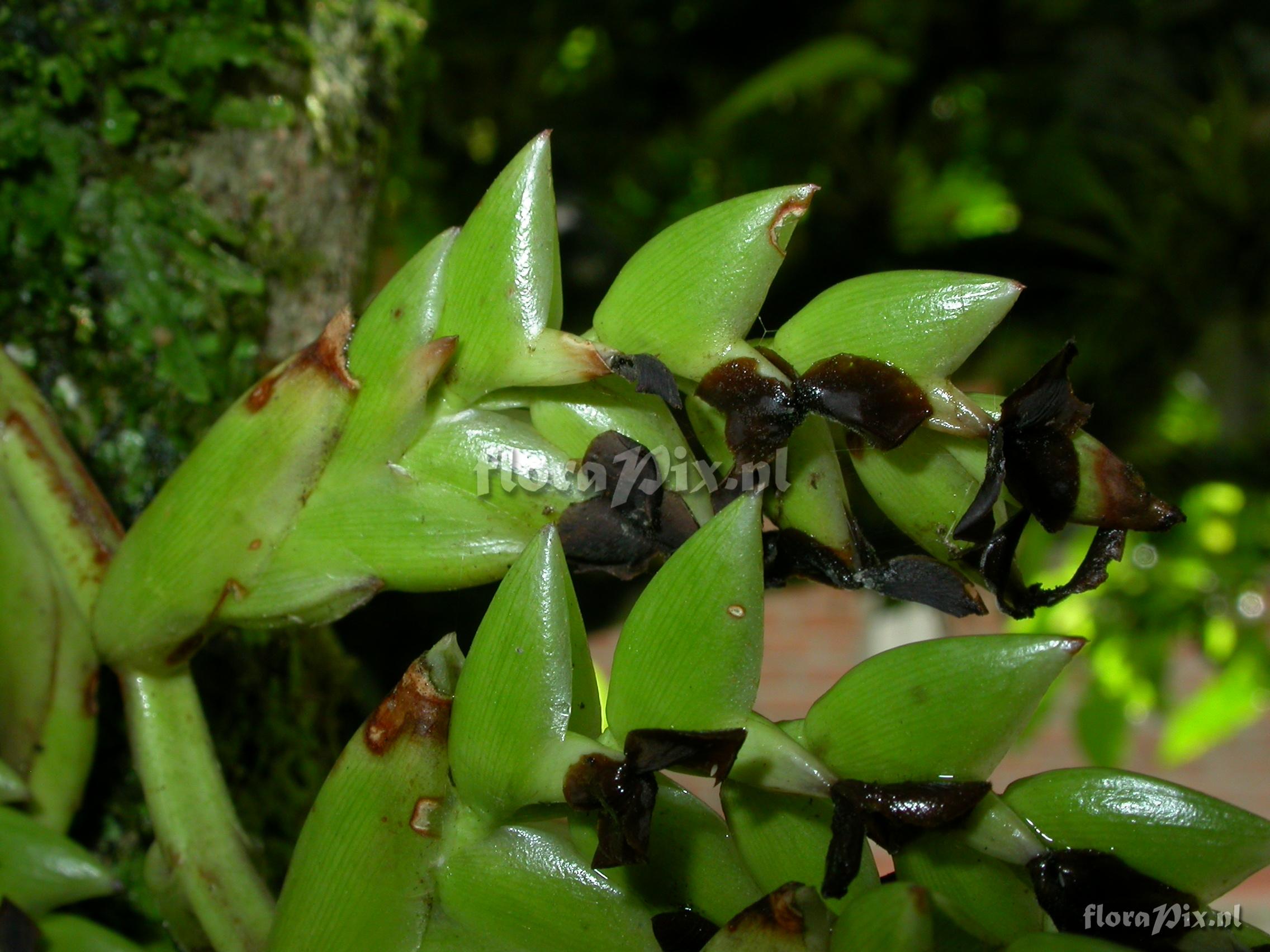 Locality: Ecuador - Prov. of Zamora-Chinchipe, area of Estación Cientifica San Francisco (S 03°58“, W 79°04“ ), road Loja-Zamora, ca. 35 km from Loja; moist montane forest Photographer: Florian Werner Note: Col.: Werner, F.A. 2205 (22-04-2007) - Det.: H. Luther (SEL) 2008 "rare; budding. 2nd, adult but infertile specimen collected at 2650m on trail to Tiro plots of Mandl & Lehnert (10.5.07), in stunted upper slope forest (fallen epiphyte). 2205re: collected 22.3.08 at TS1 (on T141)."