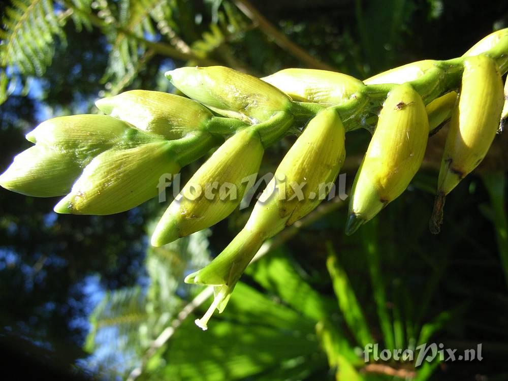 Photographer: Peter Tristram Note: A flower and branch, of the same plant (see pictures Derek), taken a week ago. These are mature flowers. It has naked petals hence the Tillandsia segregata label (as Vriesea morrenii).