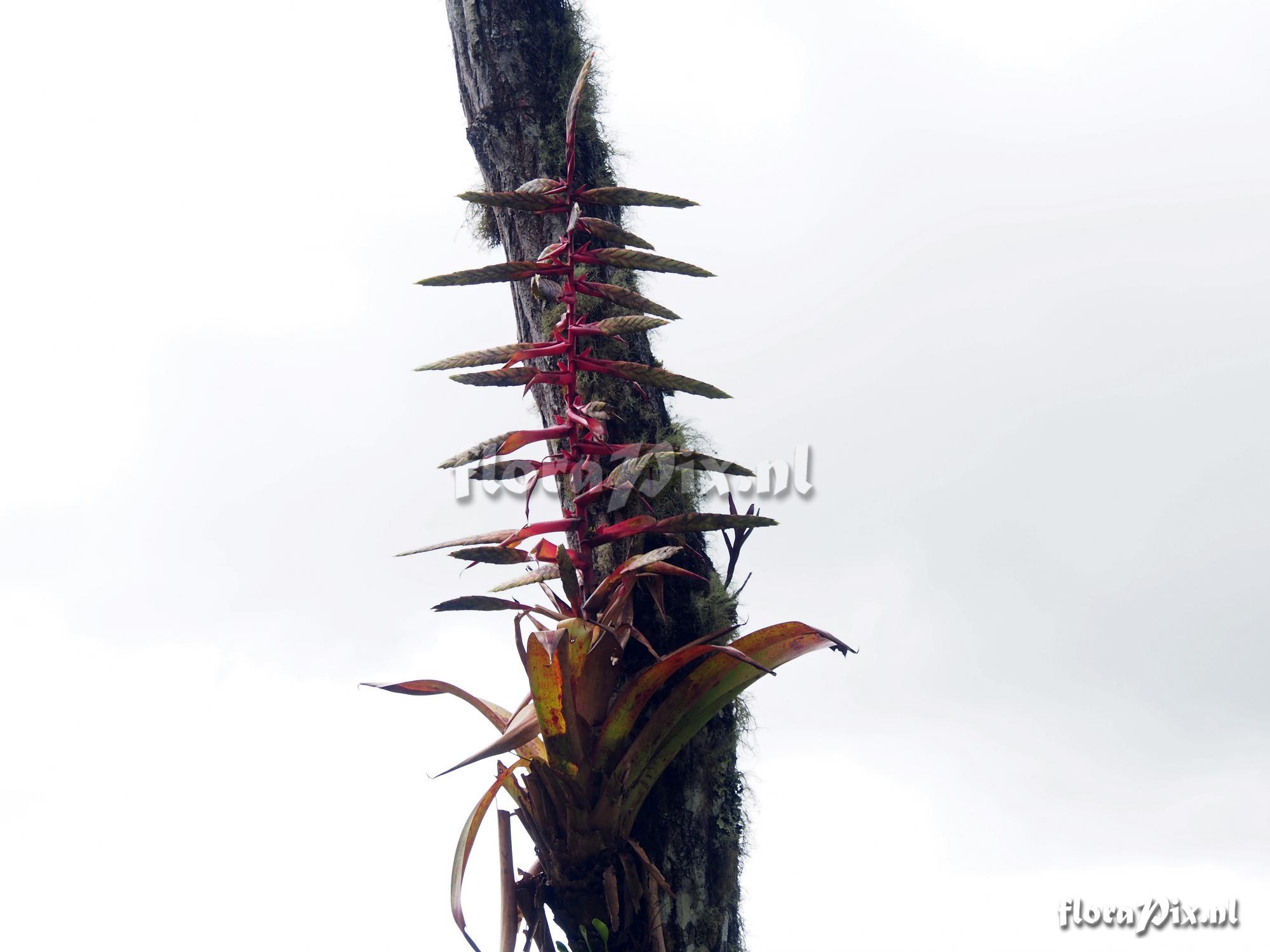 Locality: Ecuador - Morona-Santiago Province - Highway 45 39 km north of Gualaquiza at an elevation of 1639 meters. Photographer: Jerry Raack Note: I saw a few of these large T. fendleri growing epiphytically in the trees. They were just past anthesis, but the bracts were still colorful. (Sent: brom-l@science.uu.nl) Identification: asked