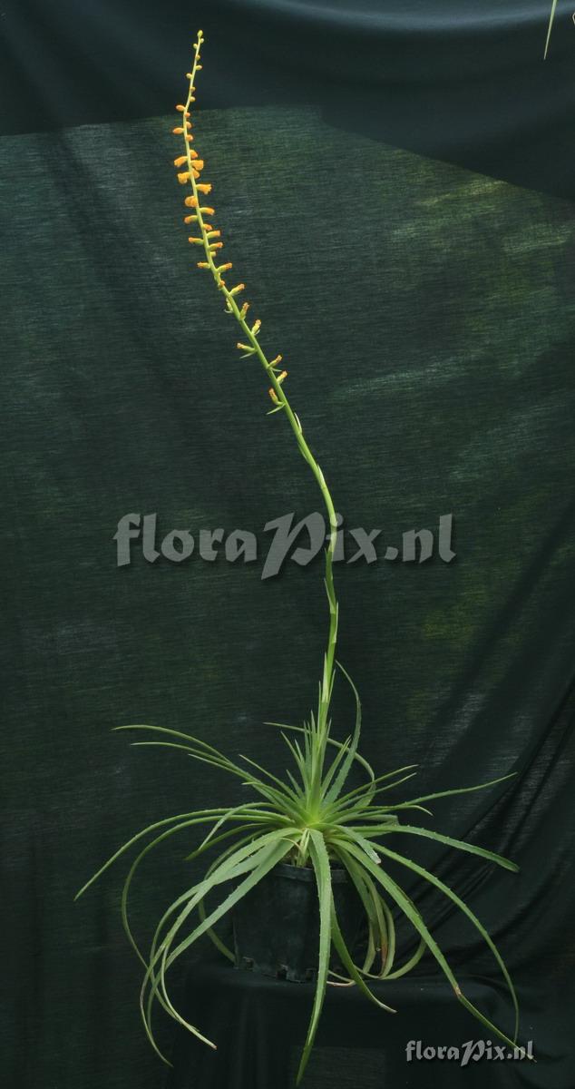 Mine has been said to be Dyckia remotiflora but mine has less than a third as many flowers! Yours is beautiful. Where are you growing yours? - Note (1964): Richard Martin (2008-07-14) - Chas, I'm also very fond of my Dyckia remotiflora its fat leaves and gentle thorns, the way it sends out underground pups, on repotting my pot had several which suprized me. It has yet to flower. Strangely the flowers pictured do have a similarity to my Fosteriana penduliflora though darker and more sparse.