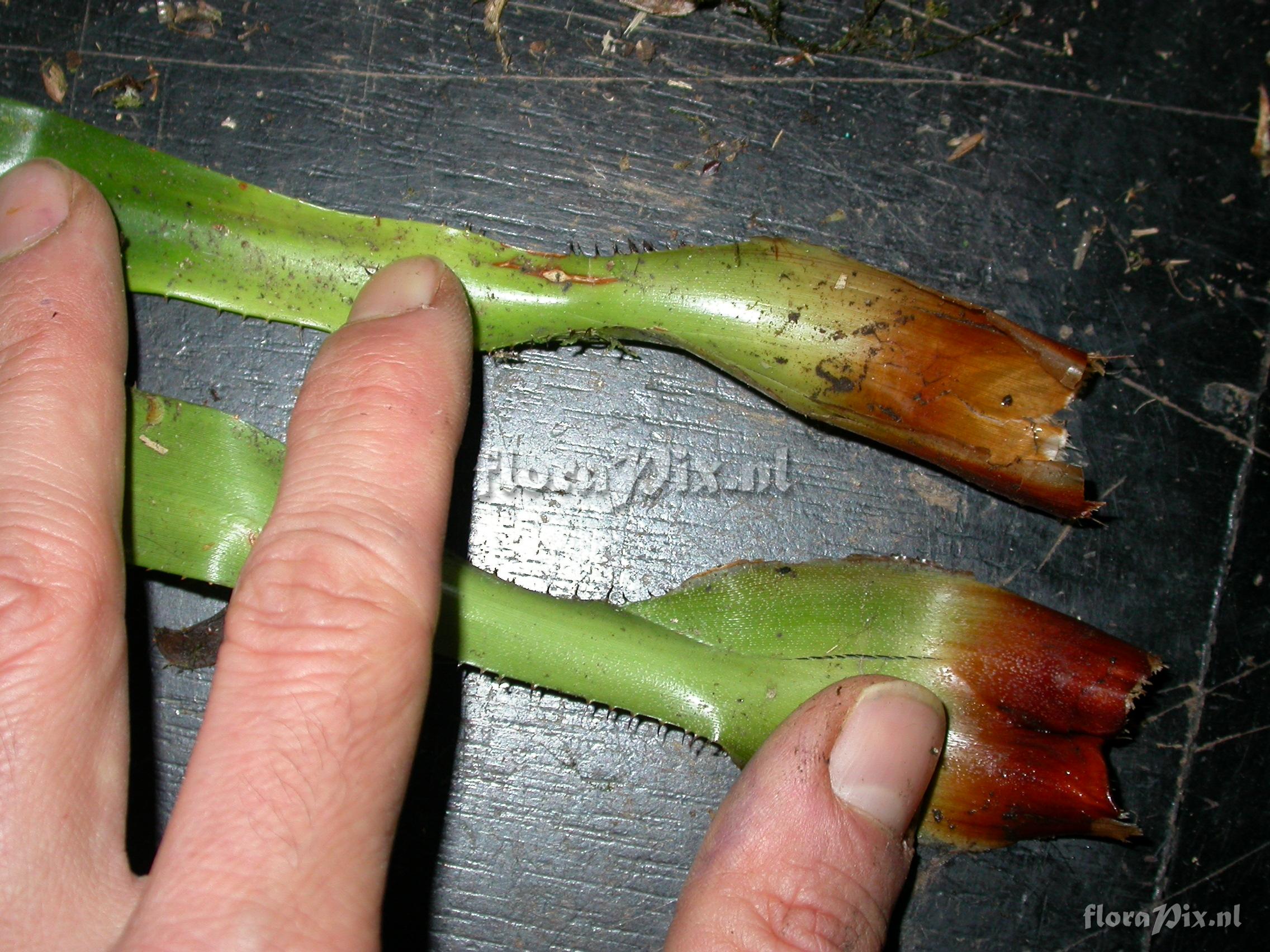 8021 - Bromeliads (Wild) - 2011-10-13(Dimension: 2302 x 1754 pixels - Counter: 12435) Greigia ![]() Locality: Ecuador - Zamora-Chinchipe Province; few km east of Pass (""El Tiro"") between Loja and Zamora; moist lower slope forest Photographer: Florian Werner Note: Col.: Werner, F.A. 2136 (09-12-2006) "leaves 25-30cm long, base chestnut-brown on both sides, shoot ca. 1cm diameter; considerably smaller than any other local Greigia; single leaves from mat. plant."