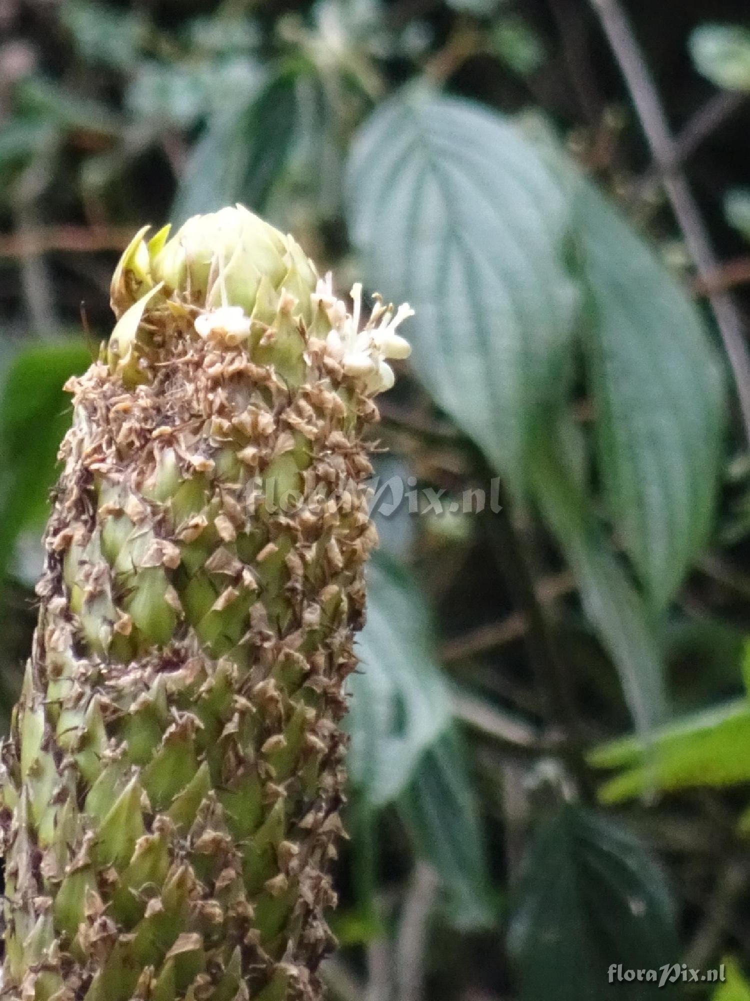 12864 - Bromeliads (Wild) - 2016-11-10(Dimension: 1530 x 2050 pixels - Counter: 17127) Guzmania aff. farciminiformis ![]() (Uploaded as: Bromeliad - unknown genus AND species) Locality: Peru - Leymebamba District - On the road uphill from Leymebamba to Tajopampa, along the Atuen River Photographer: Scott Sandel Note: Saw only one group, because of the tall inflo. Growing in rocky soil, almost lithophytic - with a few Greigia leymebambana. In trees, lots of orchids & bromeliads, including Vriesea tequendamae. (Sent: brom-l@science.uu.nl) Identification: Solved