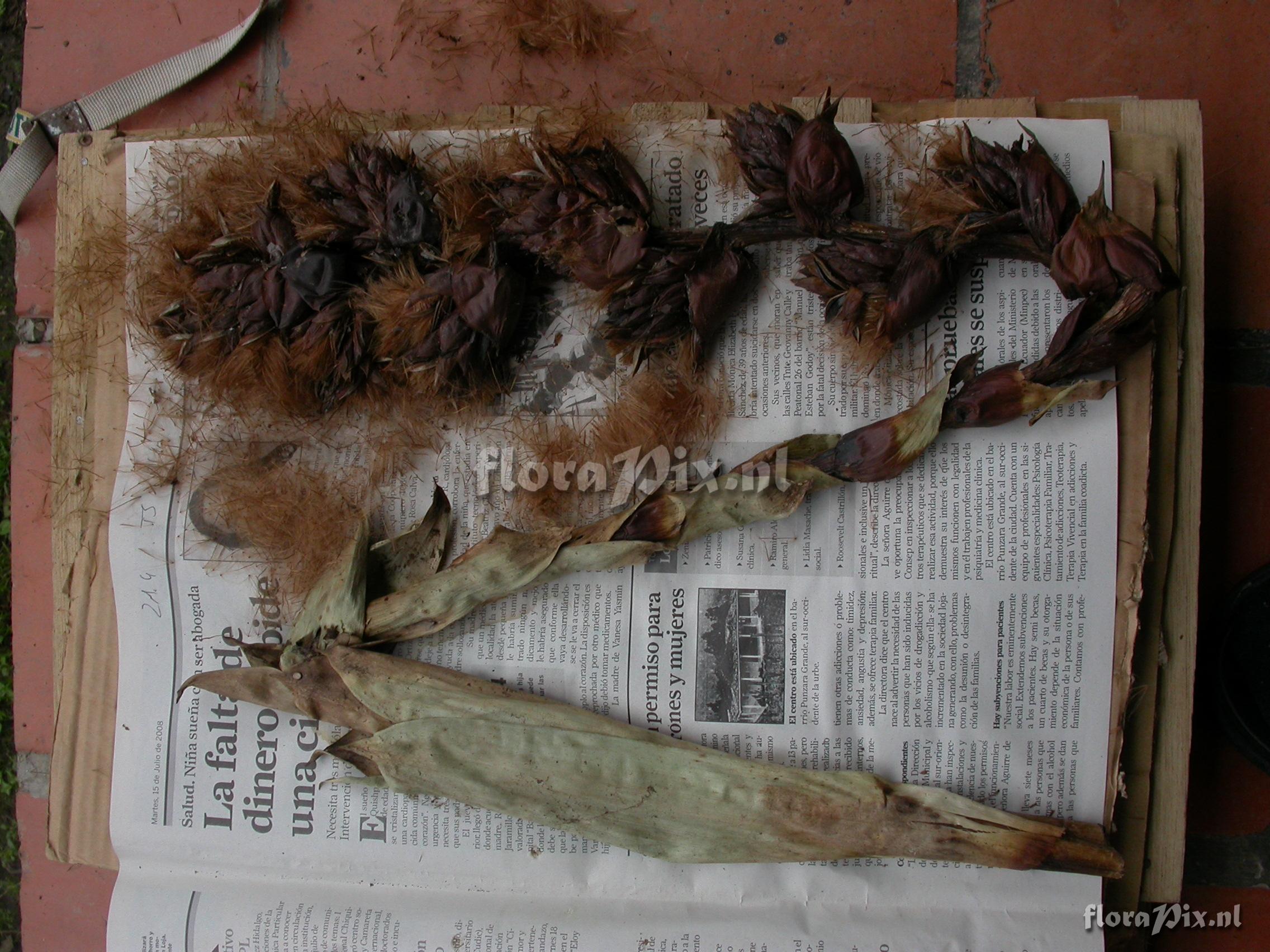 8044 - Bromeliads (Wild) - 2011-10-13(Dimension: 2302 x 1754 pixels - Counter: 11581) Guzmania xipholepis L.B. Sm. ![]() Locality: Ecuador - Prov. of Zamora-Chinchipe, area of Estación Cientifica San Francisco (S 03°58“, W 79°04“ ), road Loja-Zamora, ca. 35 km from Loja; moist montane forest Photographer: Florian Werner Note: Col.: Werner, F.A. 3058 (20-04-2010) inf. erect, large, with globose bracts subduing every parial infl. Leaves with very broaf base, tapering off ver gradually (but tip rounded).