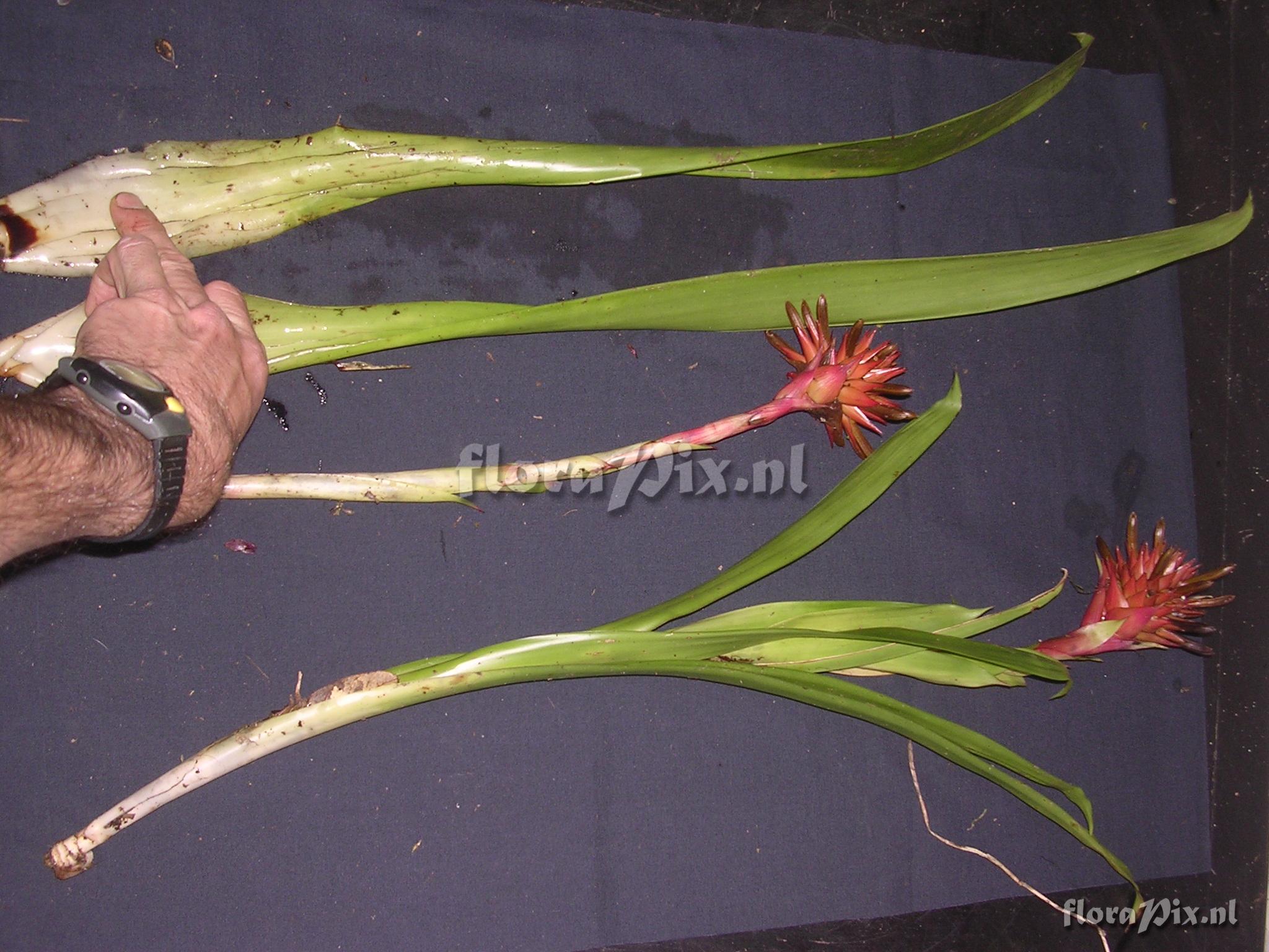8443 - Bromeliads (Wild) - 2011-10-13(Dimension: 2078 x 1586 pixels - Counter: 8628) Guzmania bessae Luther ![]() Locality: Ecuador - Prov. of Zamora-Chinchipe, area of Estación Cientifica San Francisco (S 03°58“, W 79°04“ ), road Loja-Zamora, ca. 35 km from Loja; moist montane forest Photographer: Florian Werner Note: Col.: Werner, F.A. 1595 (16-06-2005) - Det.: J.M. Manzanares regularly terrestrial, too. Bracts (with ripening fruits) intende brick-red.