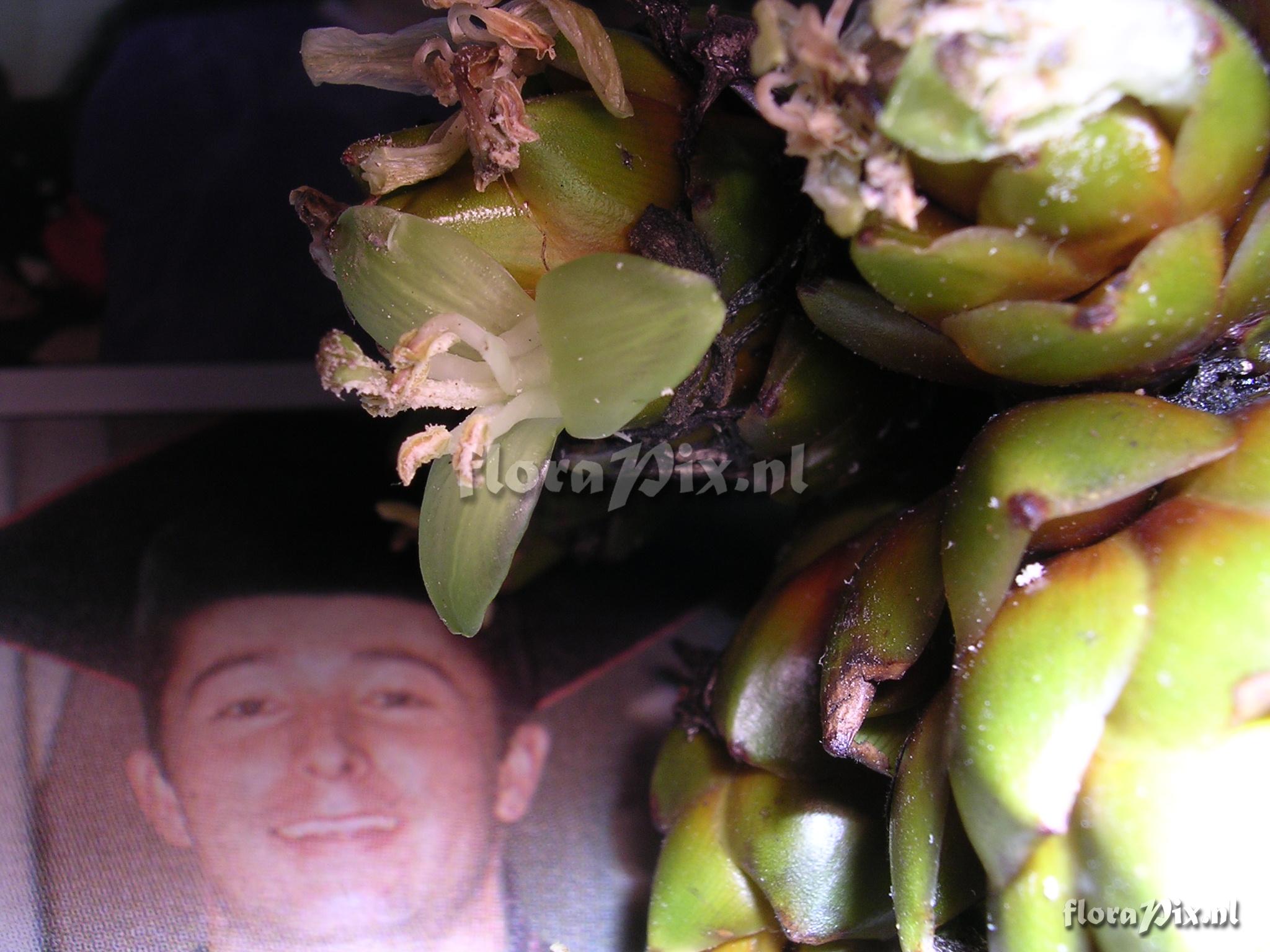 8695 - Bromeliads (Wild) - 2011-10-13(Dimension: 2078 x 1586 pixels - Counter: 8241) Guzmania confusa L.B. Sm. ![]() Locality: Ecuador - Prov. of Zamora-Chinchipe, area of Estación Cientifica San Francisco (S 03°58“, W 79°04“ ), road Loja-Zamora, ca. 35 km from Loja; moist montane forest Photographer: Florian Werner Note: Col.: Werner, F.A. 1270 (26-10-2004) - Det.: J.M. Manzanares "flowers white, opening at dusk; different degrees of purple to all parts of plant in some specimens, but especially to undersides of leaves, others virtually pure green. Tips of leaves uncurled."