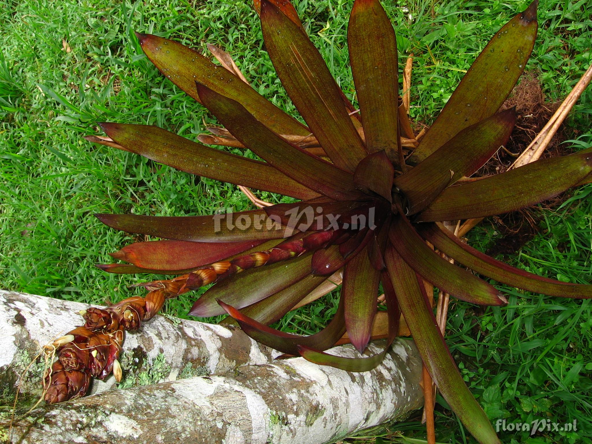 9388 - Bromeliads (Wild) - 2011-10-13(Dimension: 2078 x 1586 pixels - Counter: 13557) Guzmania sp. nov. ![]() Locality: Ecuador - Prov. of Zamora-Chinchipe, area of Estación Cientifica San Francisco (S 03°58“, W 79°04“ ), road Loja-Zamora, ca. 35 km from Loja; moist montane forest Photographer: Florian Werner Note: Col.: Werner, F.A. 1997 (12-05-2006) - Det.: H. Luther (SEL) 2007 veins and crossveins of leaves bright red, giving a locally unique fine squared pattern. Uncommon. Petals wool-white, bracts essentially reddish-brown. Finally pressed (photos) 4.6.06.