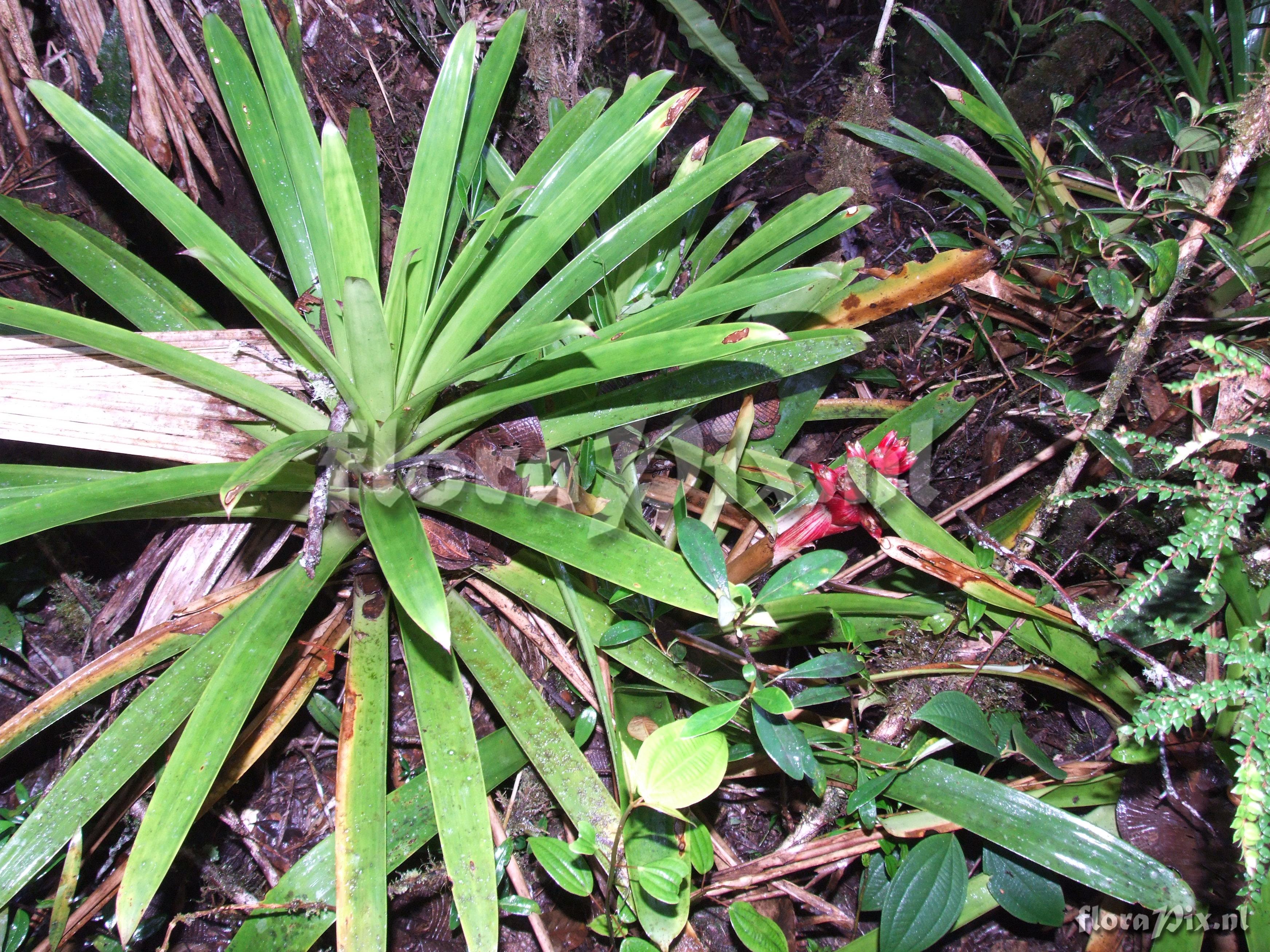 7823 - Bromeliads (Wild) - 2011-10-13(Dimension: 3518 x 2666 pixels - Counter: 13819) Mezobromelia cf. capituligera ![]() Locality: Ecuador - Prov. of Zamora-Chinchipe, area of Estación Cientifica San Francisco (S 03°58“, W 79°04“ ), road Loja-Zamora, ca. 35 km from Loja; moist montane forest Photographer: Florian Werner Note: Col.: Werner, F.A. 2058 (19-06-2006) - Det.: W. Till (U Vienna) 2011 "leaves fairly light green without markings; bracts bright pinkish red; flowering: petals white, slim tubular."