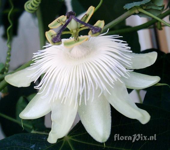 1664 - Passiflora (Garden) - 2006-09-17(Dimension: 597 x 550 pixels - Counter: 6475) Passiflora 'White Queen' ![]() Photographer: Ulrich Rothtauscher Note: Passiflora caerulea'CE'x Passiflora eichleriana I don't know it's the Original 'White Queen' because the bloom has coloured corona filiaments?