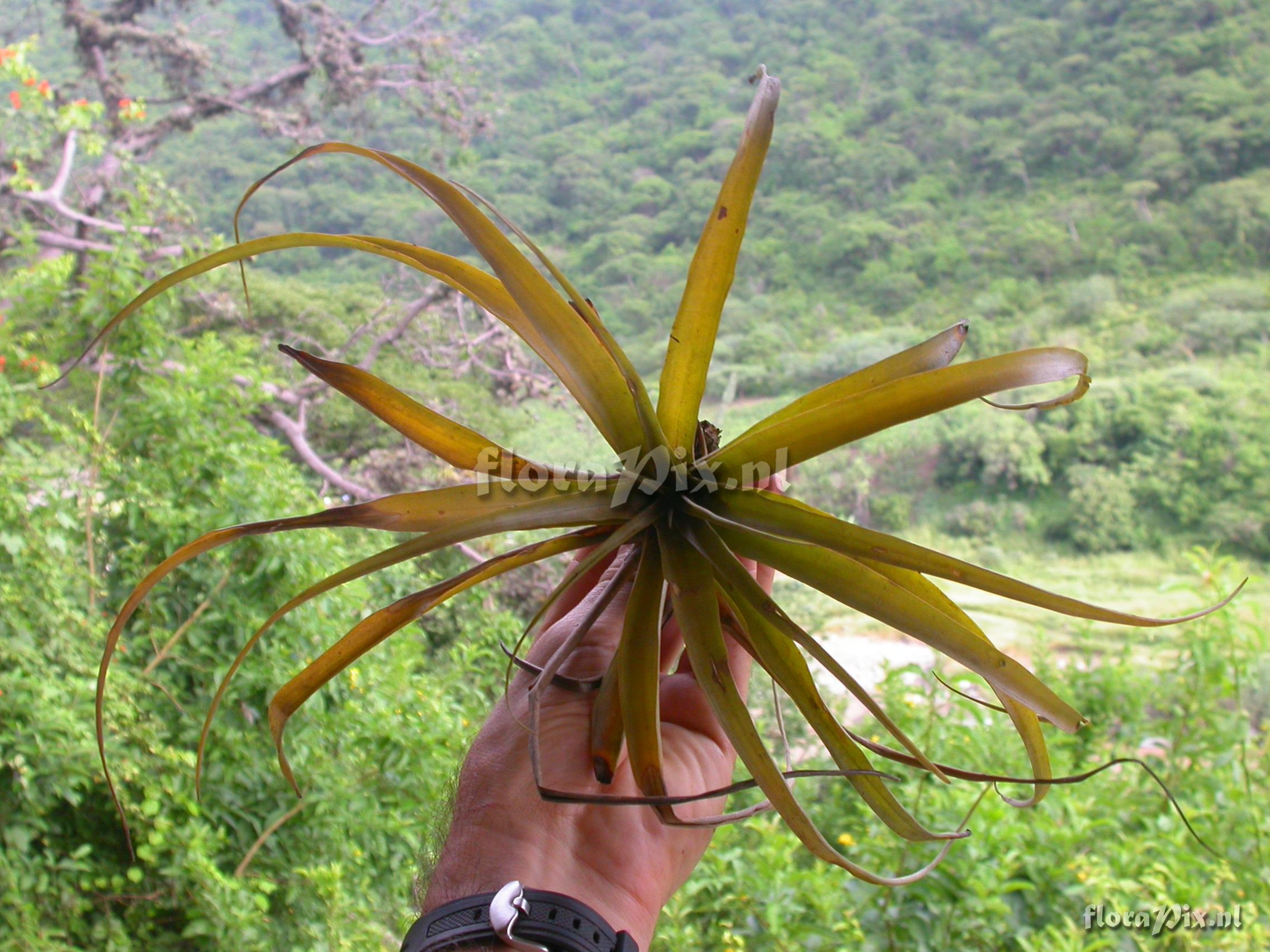 8926 - Bromeliads (Wild) - 2011-10-13(Dimension: 2302 x 1754 pixels - Counter: 10076) Racinaea multiflora var. tomensis (Benth.) M.A.Spencer & L.B. Sm. ![]() Locality: Ecuador - Loja Province; Reserva Laipuna (400-1400 m); off road Catacocha - Macarį, NW of Portachuelo (S 04°14 W 79°55'); premontane dry forest. Photographer: Florian Werner Note: (as Werner, F.A. 925 ) - Det.: W. Till (U Vienna) 2011 "Leaves bent far downward and conspicuously yellowish; infl. erect, old and dry all of them."