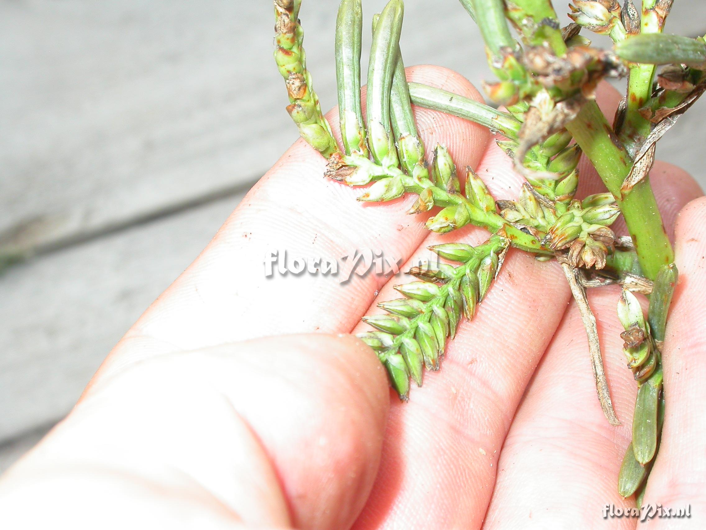 8932 - Bromeliads (Wild) - 2011-10-13(Dimension: 2302 x 1754 pixels - Counter: 10564) Racinaea multiflora var. tomensis (Benth.) M.A.Spencer & L.B. Sm. ![]() Locality: Ecuador - Loja Province; Reserva Laipuna (400-1400 m); off road Catacocha - Macarį, NW of Portachuelo (S 04°14 W 79°55'); premontane dry forest. Photographer: Florian Werner Note: (as Werner, F.A. 925 ) - Det.: W. Till (U Vienna) 2011 "Leaves bent far downward and conspicuously yellowish; infl. erect, old and dry all of them."