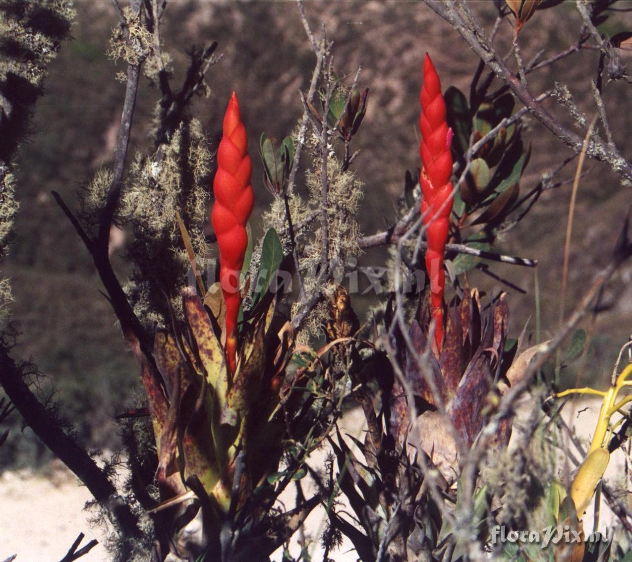5492 - Bromeliads (Wild) - 2010-02-17(Dimension: 1305 x 1184 pixels - Counter: 14611) Tillandsia walteri ![]() Locality: Peru - North of Huaraz Photographer: Guillermo Rivera Note: Scan of photo - T. walteri near Chota, Nth Peru. A pink-bracted form grows near Cuzco. Identification: