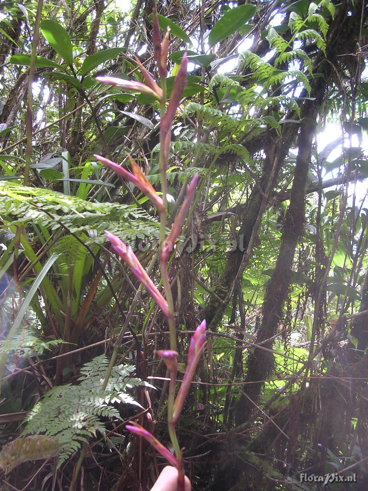 8430 - Bromeliads (Wild) - 2011-10-13(Dimension: 1566 x 2098 pixels - Counter: 8659) Tillandsia stenoura ![]() Locality: Ecuador - Prov. of Zamora-Chinchipe, area of Estación Cientifica San Francisco (S 03°58´, W 79°04´ ), road Loja-Zamora, ca. 35 km from Loja; moist montane forest Photographer: Florian Werner Note: Col.: Werner, F.A. 1593 (16-06-2005) - Det.: J.M. Manzanares "fallen with branch; flower bracts greenish yellow basally, than fadimng through bright red into (bluish) purple. Usually epiphytic and more compact."