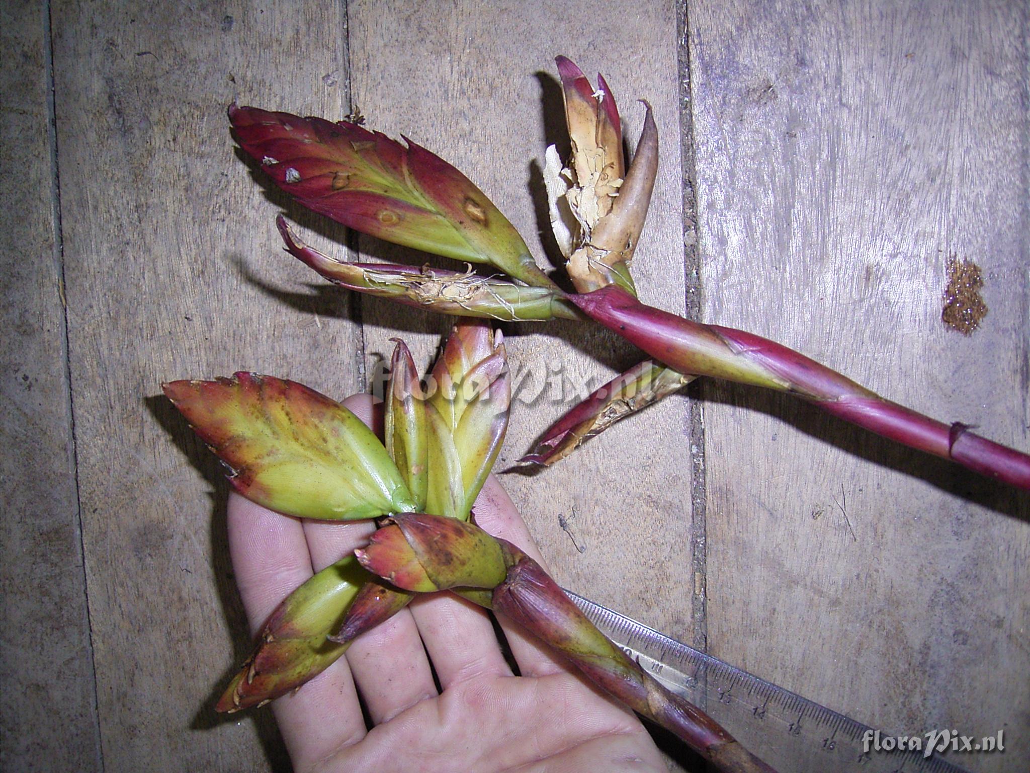 9482 - Bromeliads (Wild) - 2011-10-13(Dimension: 2078 x 1586 pixels - Counter: 8449) Tillandsia ![]() Locality: Ecuador - Prov. of Zamora-Chinchipe, area of Estación Cientifica San Francisco (S 03°58´, W 79°04´ ), road Loja-Zamora, ca. 35 km from Loja; moist montane forest Photographer: Florian Werner Note: Col.: Werner, F.A. 1790 (25-09-2005) bracts light yellow, flowers mild purple.