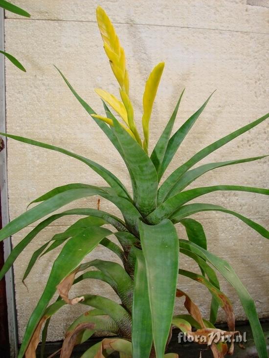 1299 - Bromeliads (Garden) - 2007-01-15(Dimension: 580 x 782 pixels - Counter: 18451) Vriesea ospinae ![]() Photographer: Ralf Käppel Note: got this plant from a friend, I cultivate the plant quite stepmotherly, she gets low light (ground of my greenhouse)and stands moist the whole year. Now, since she flowers, she becomes a lot of new growths. The temperature is maximum 30 °C in summer and the lowest is around 14 °C in winter.