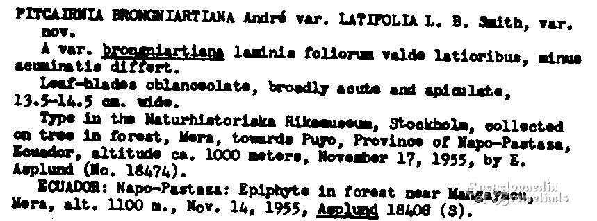 Pitcairnia brongniartiana var. latifolia