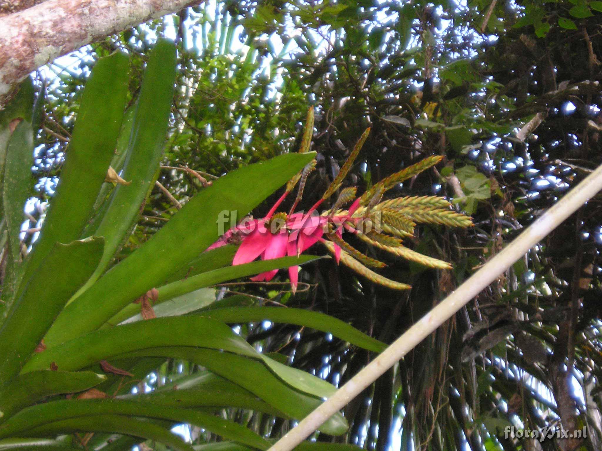 - I think it is Aechmea tessmannii that is normally more red colored in the spikes if it gets more full sun. (Verzonden: brom-l@science.uu.nl) - Determinatie (10365): HEL (2012-09-11) =Aechmea moorei