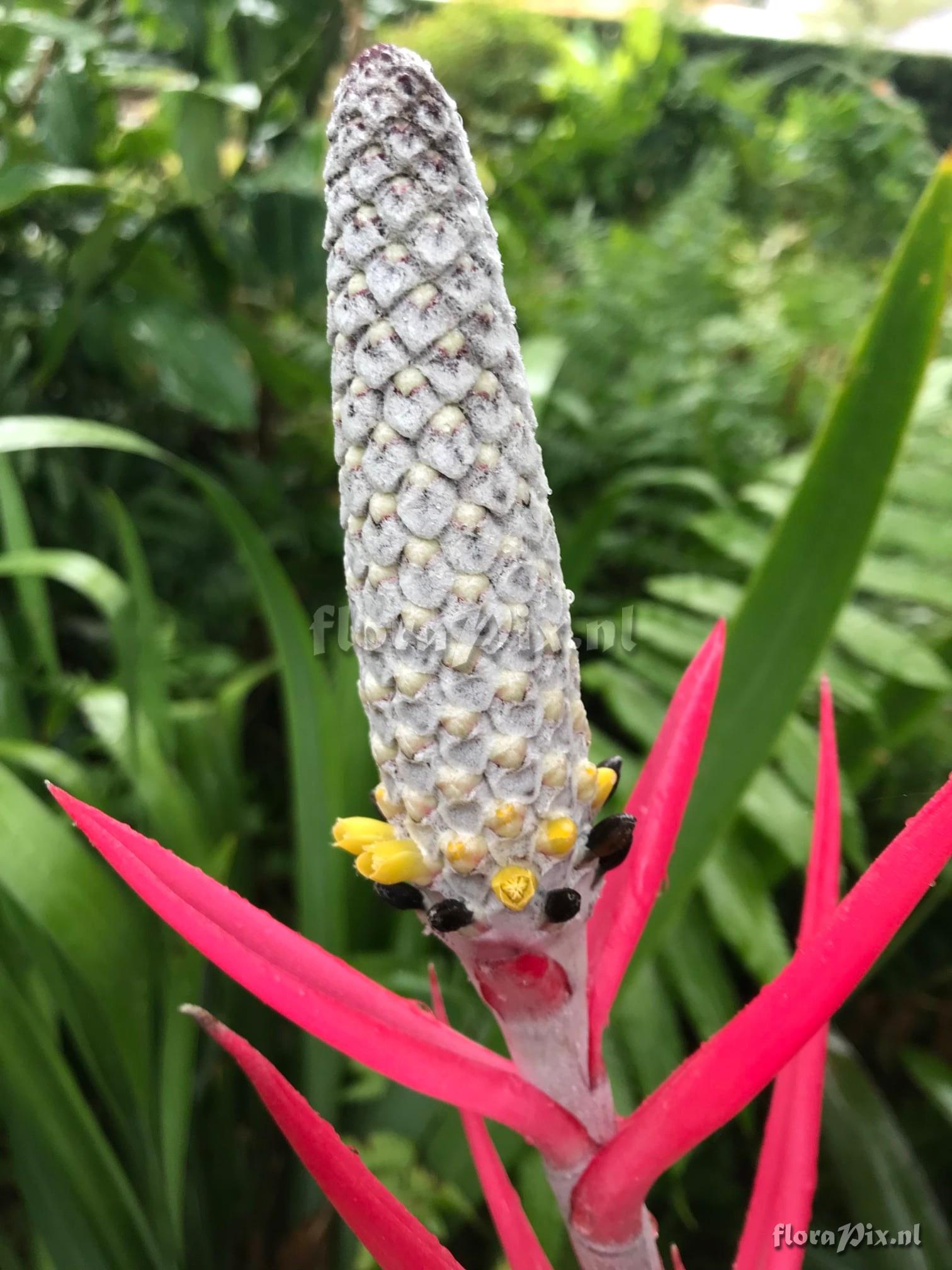 - Opmerking (16178): Graeme Barclay (2024-08-30) - This could be Ae. bromeliifolia or a hybrid thereof. Inflorescence appears to have differences to Ae. maculata/lamarchei