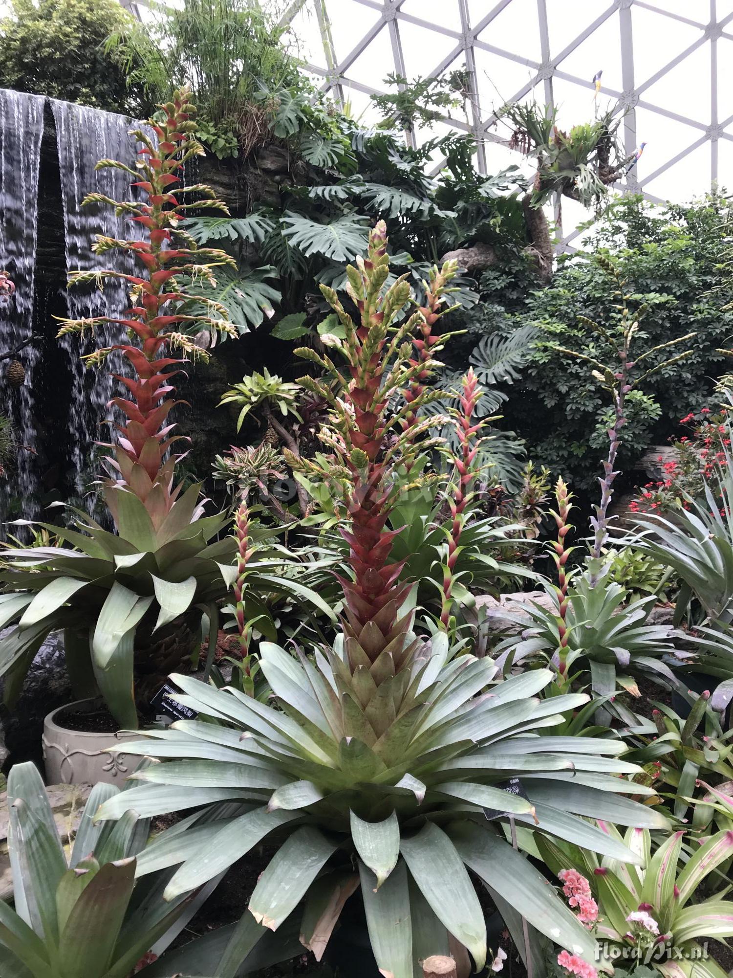 Verzamel locatie: China - Shanghai - Shanghai Chenshan Botanical Garden Fotograaf: Ping Li Opmerking: This year I have two Alcantarea imperialis are in blooming, one is Alcantarea imperialis Rubra from Australia since 2010, looks very different with the inflorescence, branches are compacter and ascending (instead of spreading, petals are thinner. Its leaves are also shorter and more compact. What happened to the plant? If it is by cultural selection or a hybrid? (Verzonden: brom-l@science.uu.nl) Determinatie: in behandeling