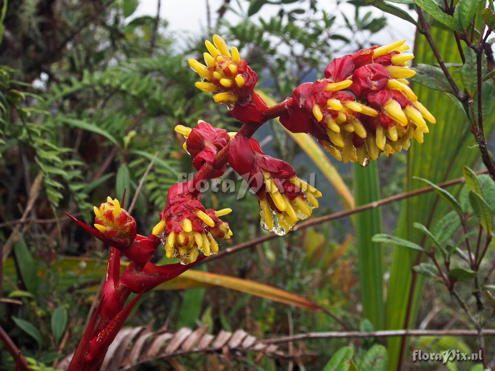 Verzamel locatie: Ecuador, Zamora-Chinchipe Province - 1st 3 pictures are from site on road from Los Encuentros heading east toward the Condor Mts in Zamora-Chinchipe Province at an altitude of 1632 meters. These plants were very large - I would say they were almost 1.25 meters tall. They were in full anthesis at the time of photographing them. They were growing terrestrially along the road cuts among the ever present deep creeping fern that covers these areas. Quite spectacular. This area did not appear to be overly wet. The 2nd 2 pictures (plant with red foliages are from a plant at a different location (Limon Antenna Road in Morona-Santiago Province growing at an altitude of 2284 meters. These plants at higher altitude were not fully open, so at the time were somewhat smaller, growing to about 1 meter high. Fotograaf: Jerry Raack