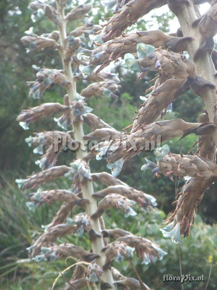 (Geladen als: Puya spec.) Verzamel locatie: Peru - Cusco - Machu picchu, near the entrance. Fotograaf: Kan Morikawa Opmerking: The long bracts can have more than 10 flowers. Determinatie: Opgelost