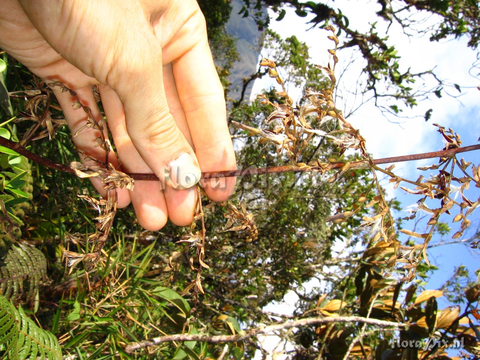 Verzamel locatie: Ecuador - Prov. of Zamora-Chinchipe, area of Estación Cientifica San Francisco (S 03°58“, W 79°04“ ), road Loja-Zamora, ca. 35 km from Loja; moist montane forest Fotograaf: Florian Werner Opmerking: Col.: Werner, F.A. 1826 (19-11-2005) - Det.: H. Luther (SEL) 2007 "in younger leaves dense grey trichomes on leafs ad- and abaxially; leaf tips curled down > 360° unmistakably. Infl. erect, 1m tall."