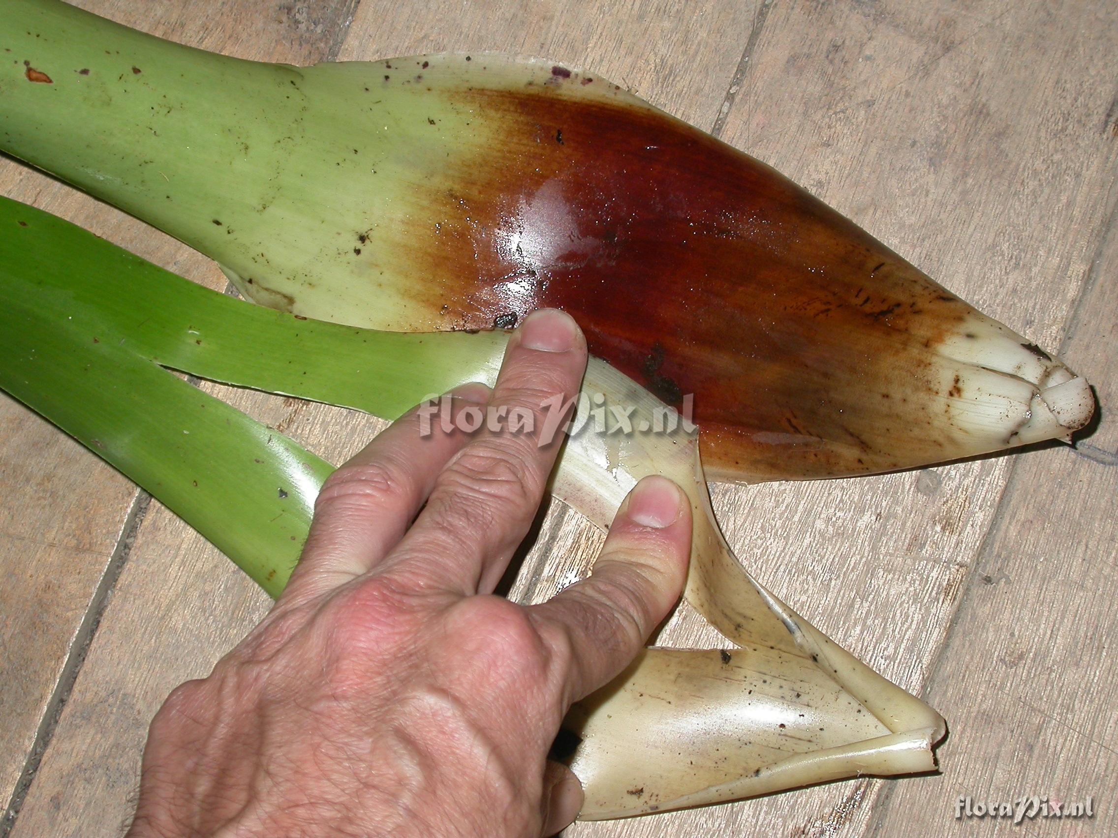 Verzamel locatie: Ecuador - Prov. of Zamora-Chinchipe, area of Estación Cientifica San Francisco (S 03°58´, W 79°04´ ), road Loja-Zamora, ca. 35 km from Loja; moist montane forest Fotograaf: Florian Werner Opmerking: Col.: Werner, F.A. 3071 (01-06-2010) - Det.: W. Till (U Vienna) 2011 inflorence >1m tall, erect, with long green leaves at base of it. flower bracts mild pinkish. vegetatively similar to a very shade-grown T. tovariensis.