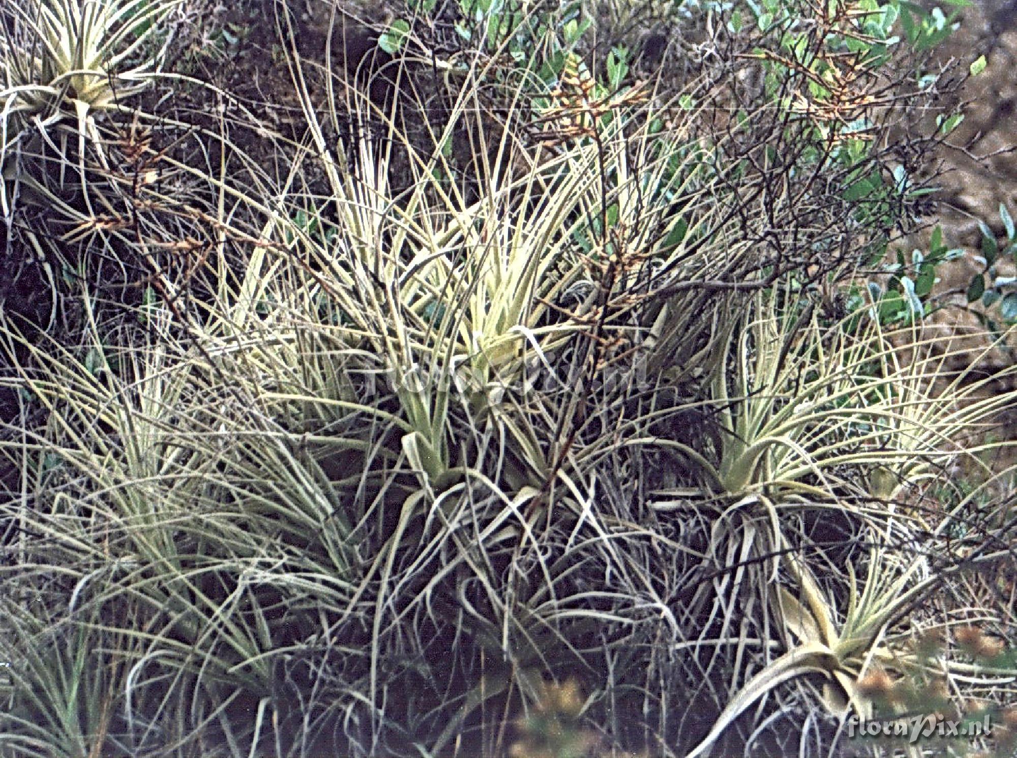 Verzamel locatie: Peru - Cajamarca - Cochabamba Fotograaf: Peter Tristram Opmerking: I found an old scan but finding the original photos will take time. No T. cacticola ( a small compact form) in this pic unfortunately. The straminea were in seed and the cacticola about to bloom (in June). (Verzonden: brom-l@nic.surfnet.nl) Determinatie: gevraagd