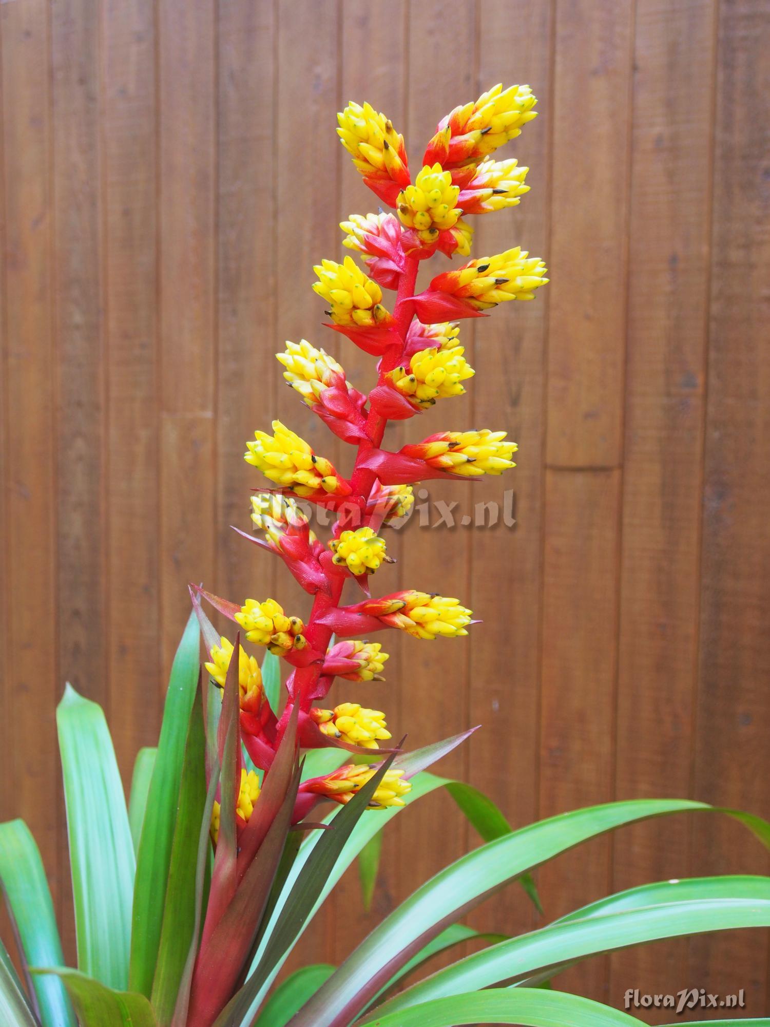 Locality: Ecuador - E - Photographer: Jerry Raack Note: THIS IS NOT THE SPECIES! By comparison, I believe this is a hybrid between Guzmania testudinis x scherzerianum which I got from Grant Groves in 2014. Note how much more congested each spike is. Flowers are not lax as in the species!