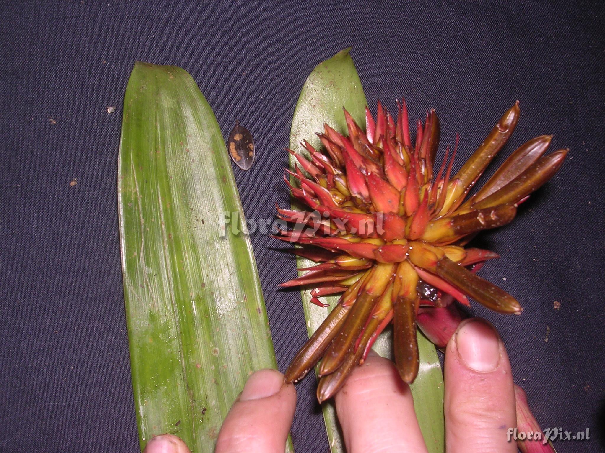 Locality: Ecuador - Prov. of Zamora-Chinchipe, area of Estación Cientifica San Francisco (S 03°58“, W 79°04“ ), road Loja-Zamora, ca. 35 km from Loja; moist montane forest Photographer: Florian Werner Note: Col.: Werner, F.A. 1595 (16-06-2005) - Det.: J.M. Manzanares regularly terrestrial, too. Bracts (with ripening fruits) intende brick-red.