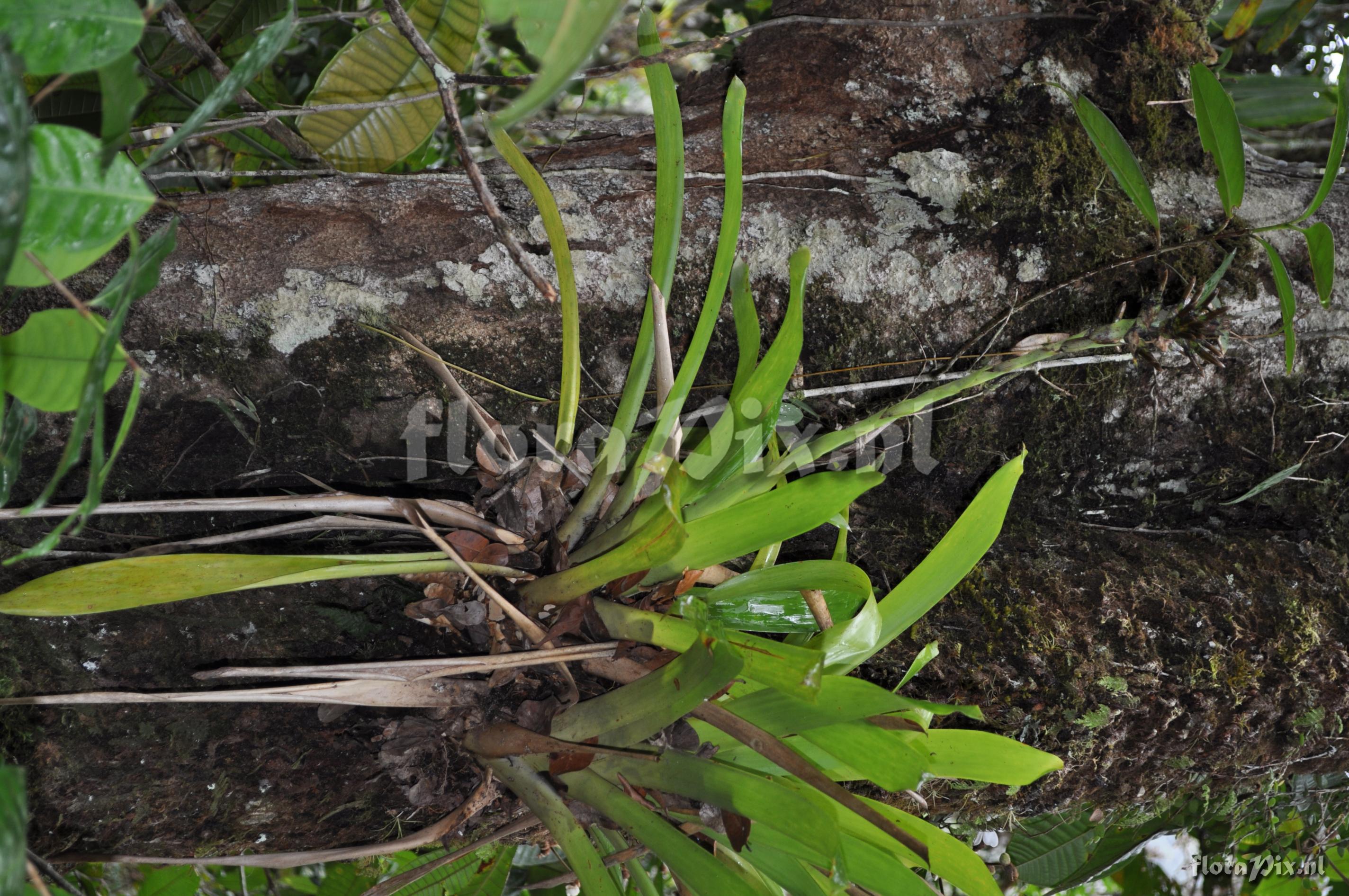 Locality: Ecuador - Prov. Zamora-Chinchipe; close to Zamora; entrance of Podocarpus NP ""Bombuscaro"", tall premontane moist forest Photographer: Florian Werner Note: Col.: Werner, F.A. 3117 (08-04-2011) small, compact (large tank in relation to diameter). Infl. erect.