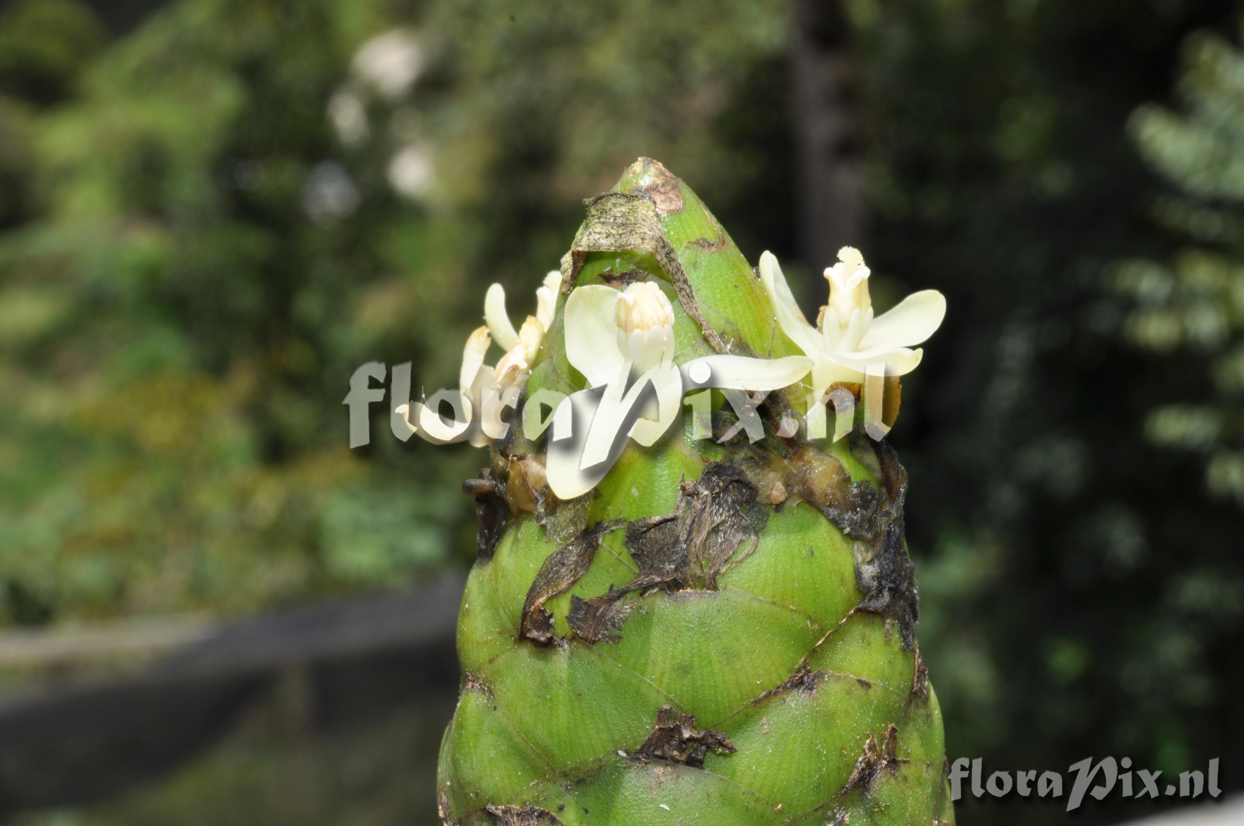 (Uploaded as: Guzmania ) Locality: Ecuador - Prov. of Zamora-Chinchipe, area of Estación Cientifica San Francisco (S 03°58“, W 79°04“ ), road Loja-Zamora, ca. 35 km from Loja; moist montane forest Photographer: Florian Werner Note: Col.: Werner, F.A. 3129 (10-04-2011) flowers white. Plants usually tilted, inflorescence erect. Identification: solved