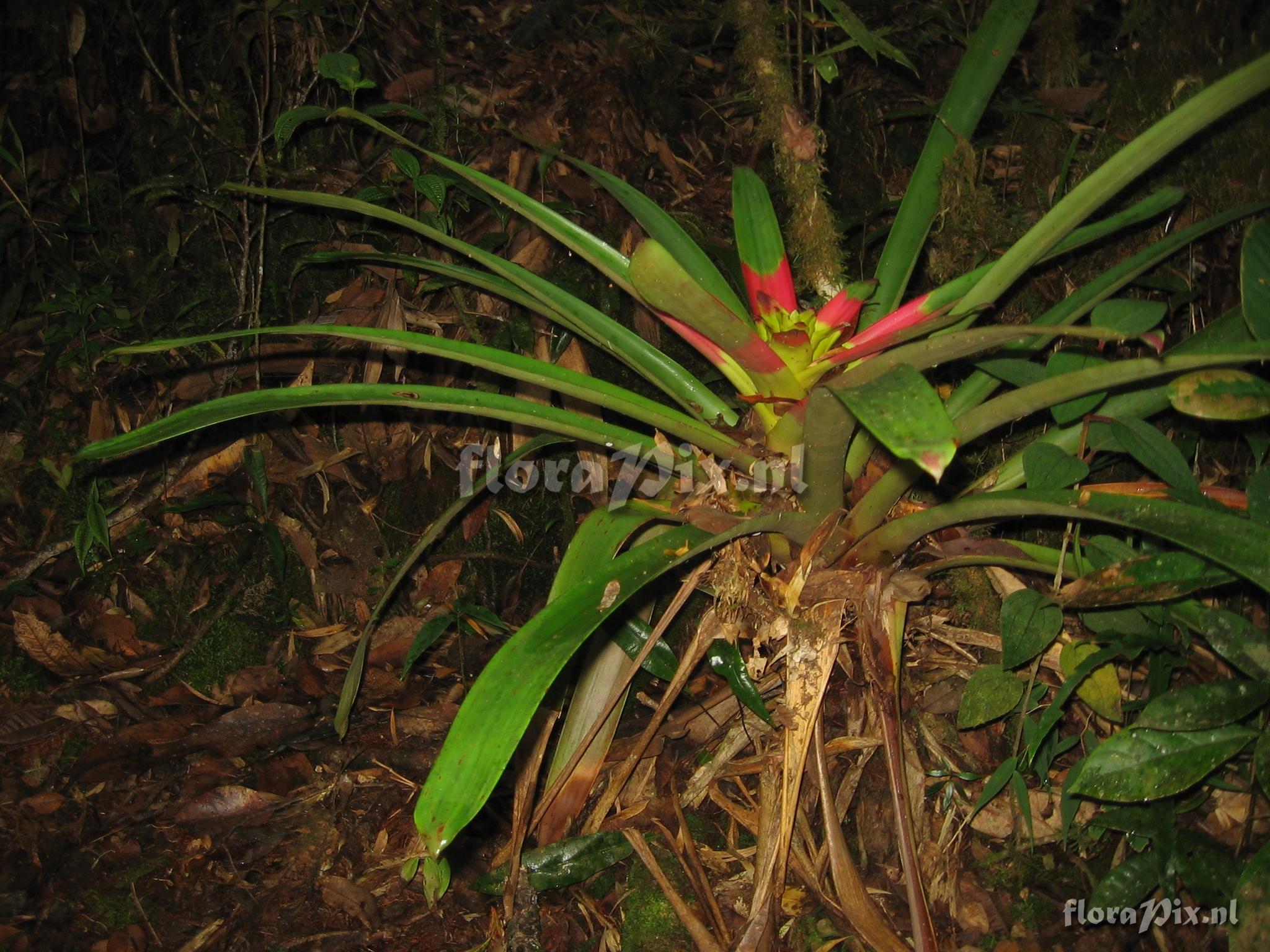Locality: Ecuador - Prov. of Zamora-Chinchipe, area of Estación Cientifica San Francisco (S 03°58“, W 79°04“ ), road Loja-Zamora, ca. 35 km from Loja; moist montane forest Photographer: Florian Werner Note: (as Werner, F.A. 1787 ) - Det.: H. Luther (SEL) 2007 "bracts red or green distally, red mid-section and yellow center; flowers bright yellow."